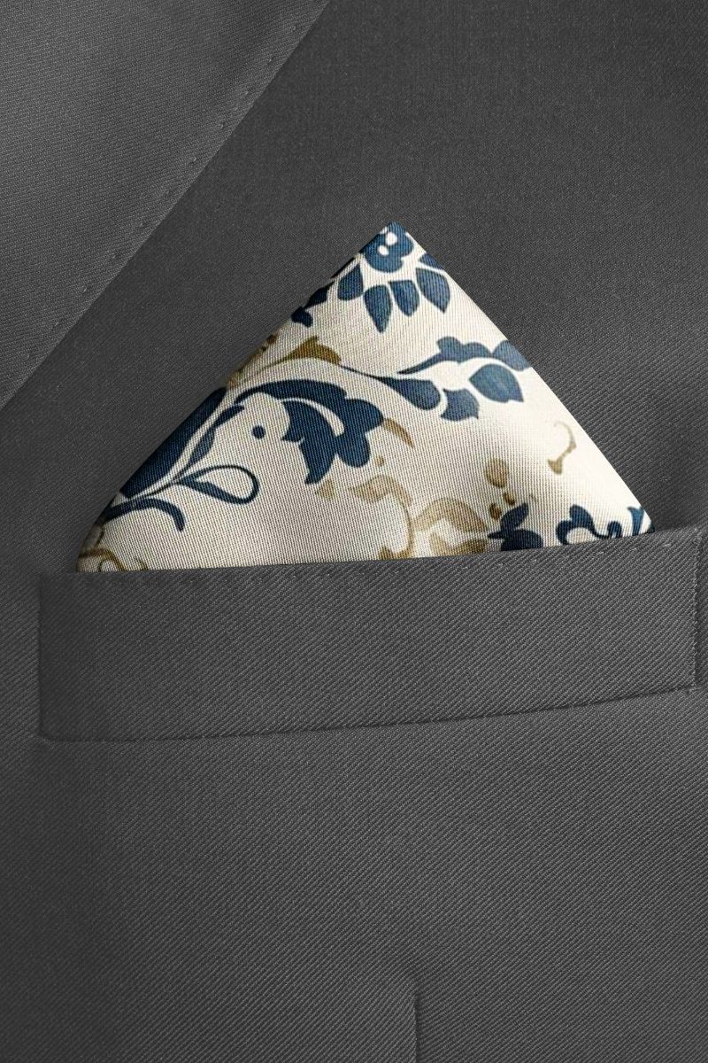 Black Wolf - ARABESQUE VINTAGE FLORAL SILK POCKET SQUARE - WHITE - SILK - 1 Piece