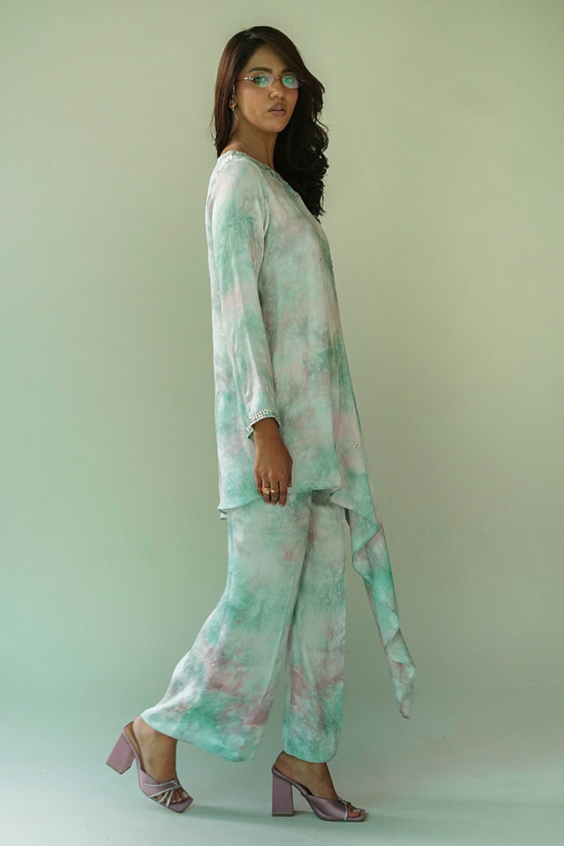 Gul E Noor - Pearl Hue - Pink Green grey - Butter Silk - 2 Piece