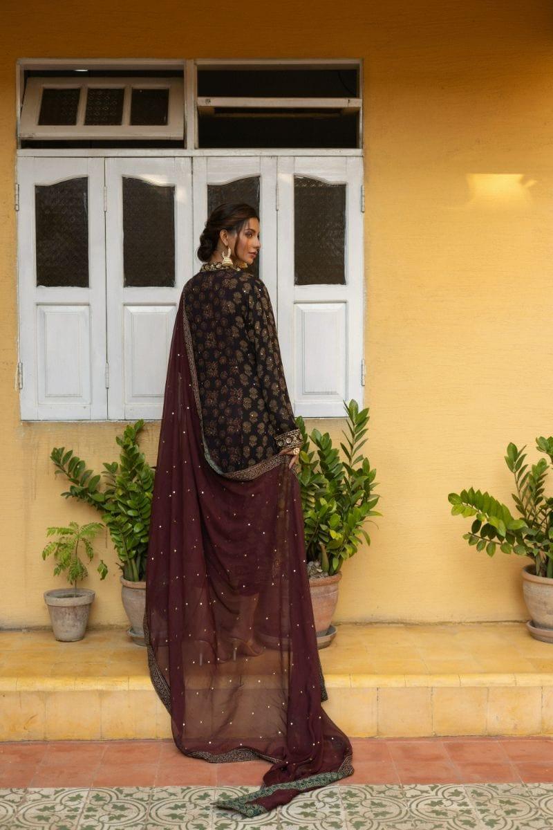 Insia Sohail - Ajrak Kurta - Earthly brown - 3 Piece - Chiffon - Studio by TCS