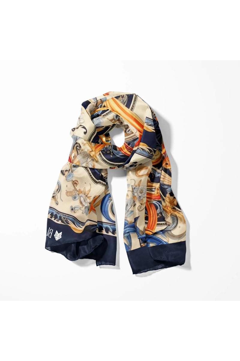 Black Wolf - GOLD DRAGON MEN SCARF - DARK BLUE - SILK - 1 Piece