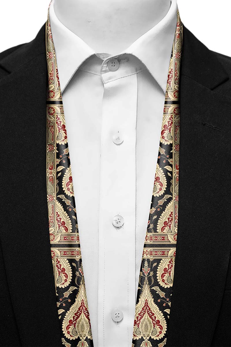 Black Wolf - GOLDEN BAROQUE MEN SCARF - BLACK - SILK - 1 Piece