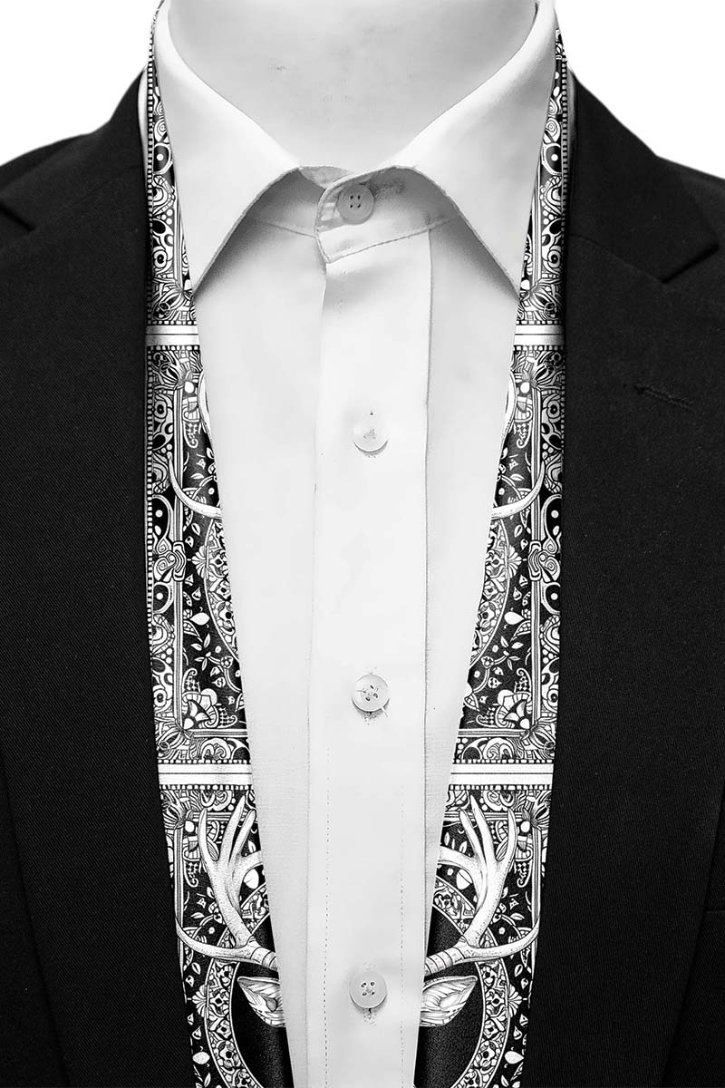 Black Wolf - DEER HEAD MEN SCARF - BLACK - SILK - 1 Piece