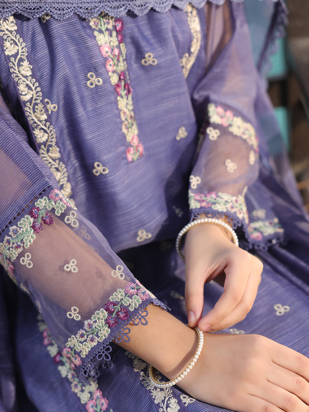 Oaks - Embroidered Slub net polly Suit For Girl - Light Lilac - 3 Piece