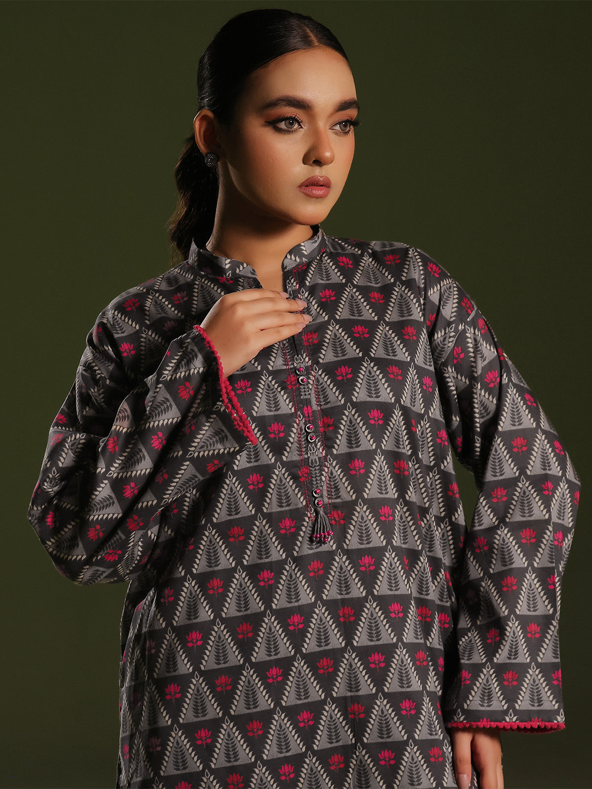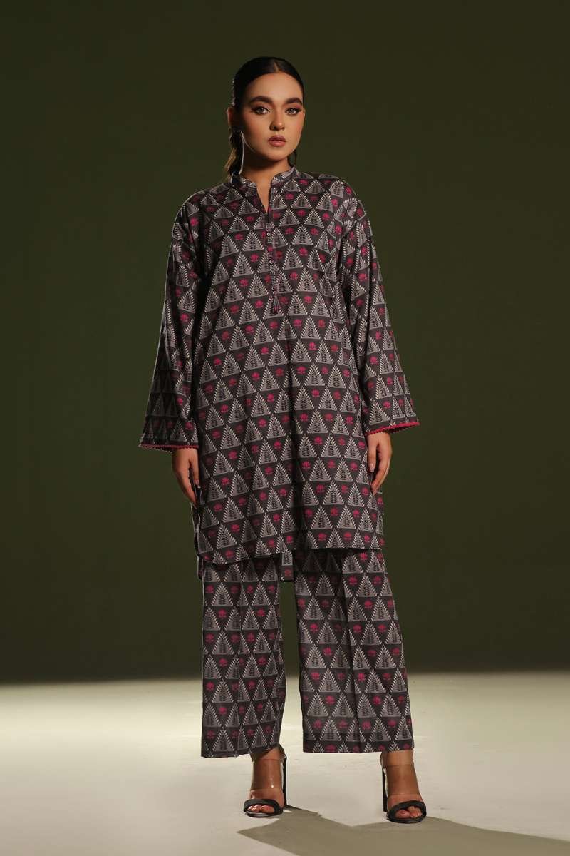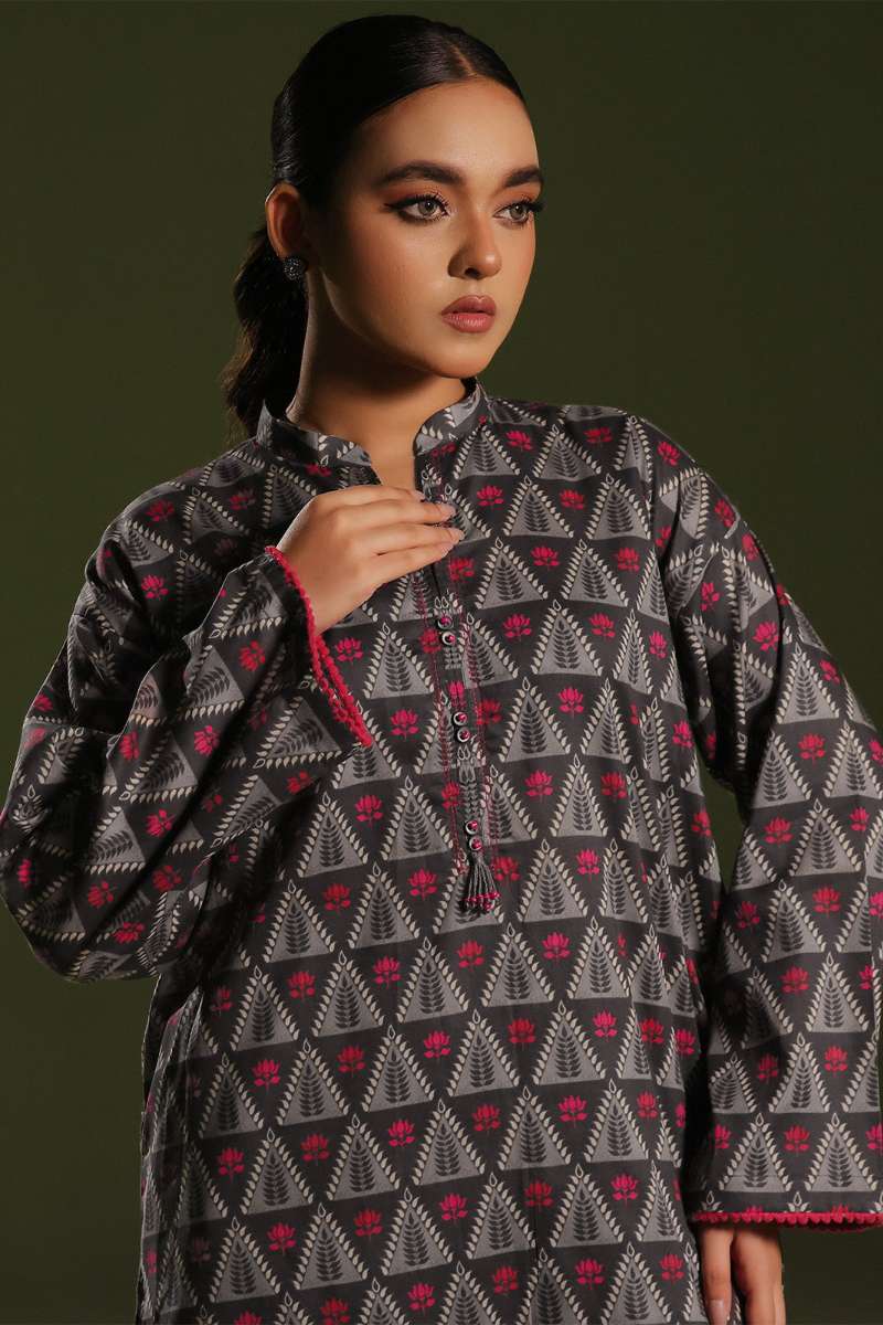 Oaks - Printed Pret Shirt Trouser Cambric Charcoal  - 2 Piece