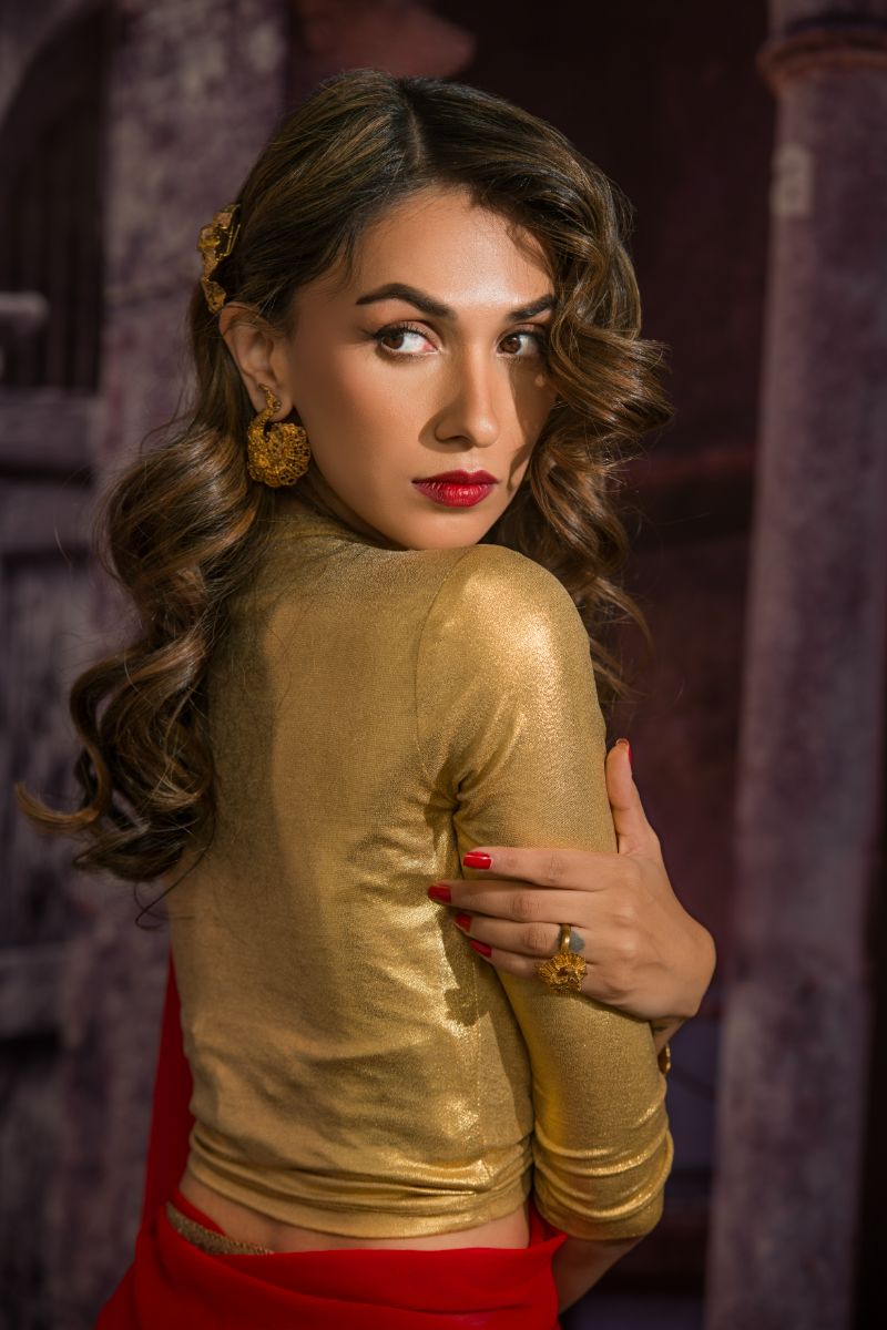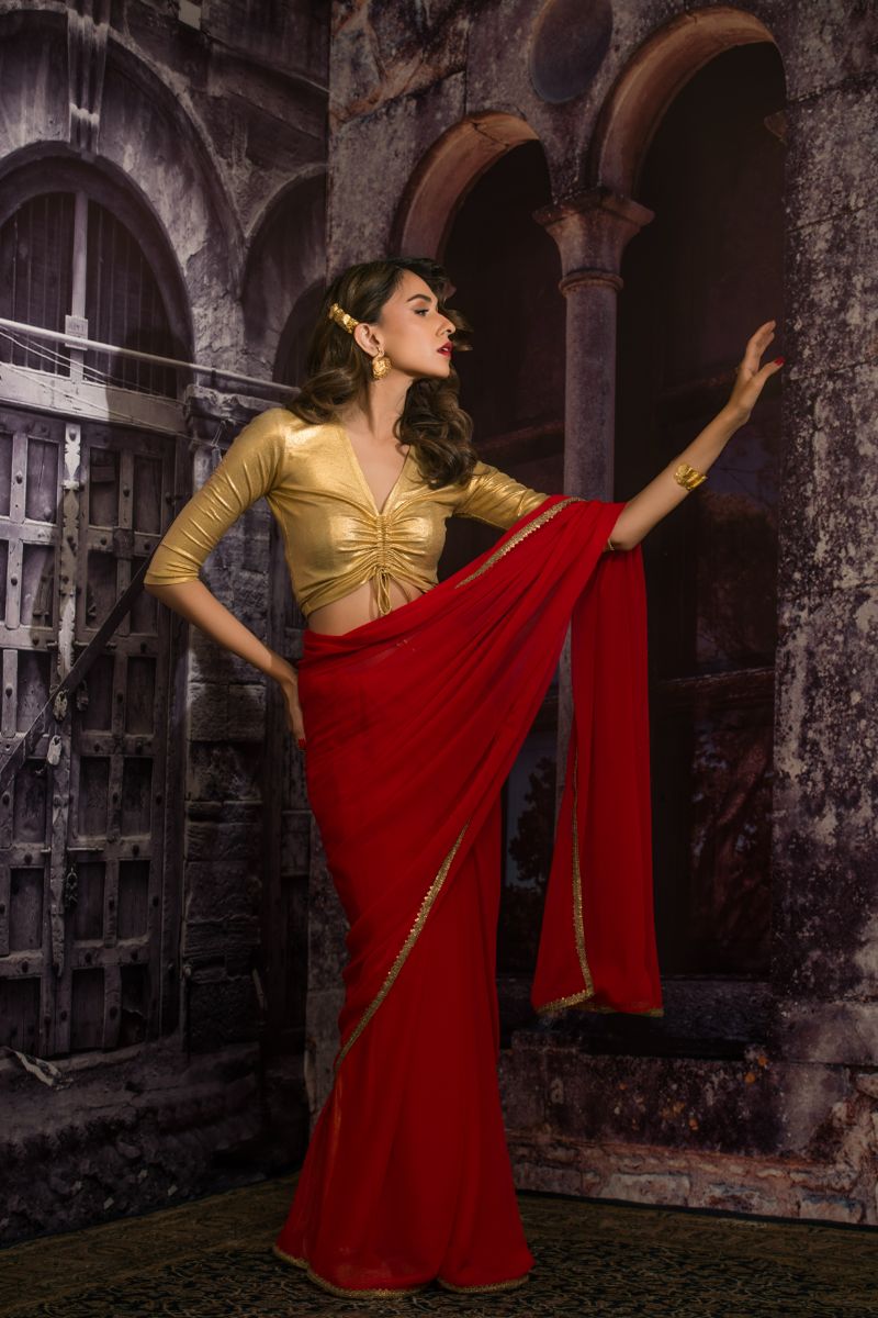 Maheen Khan - DRAWSTRING V NECK BLOUSE - Gold - Jersey - 1 Piece