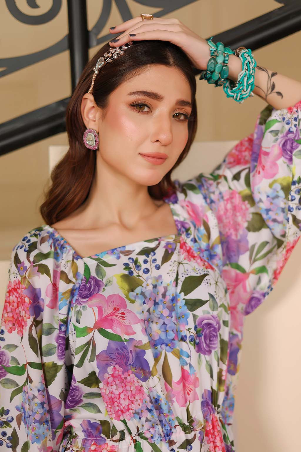 Lilac Dress from Adwears SELENE Collection. Crafted in breathable Premium Lawn, this white dress features a soft lilac floral print that radiates calm elegance. Square neckline with elastic detail offers a snug fit, while the waist tie-up your shape. The flared bottom hem and full-length sleeves with elasticated cuffs add a touch of graceful movement to this charming Dress.