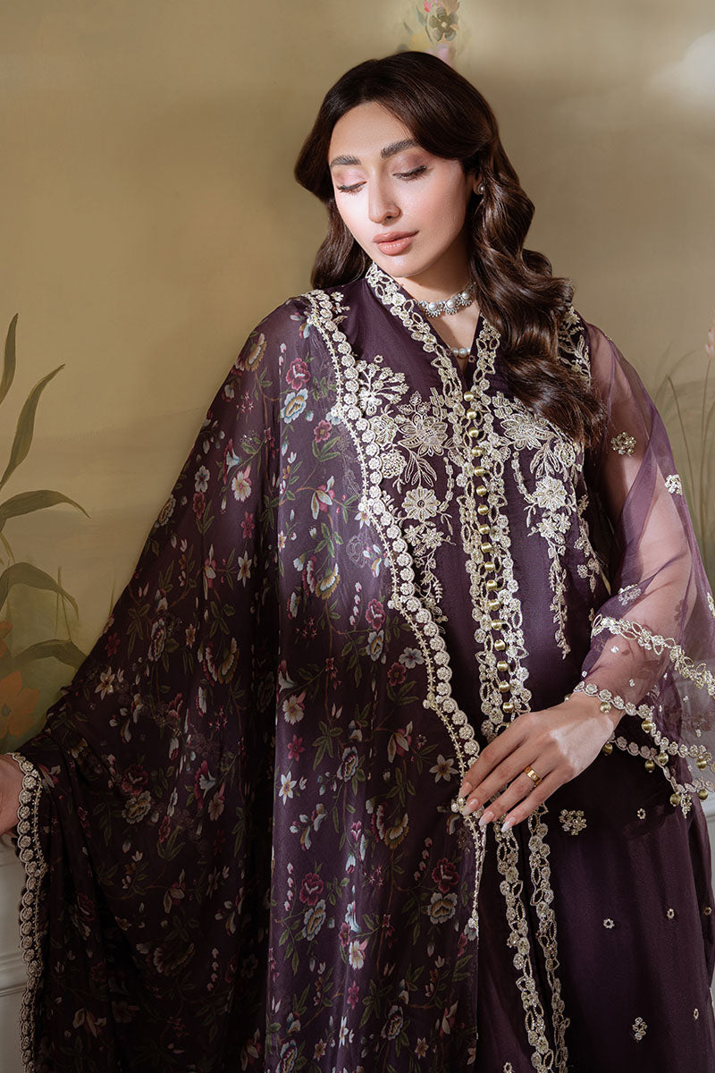 UNSTITCH 4PC: ORGANZA EMBROIDERED FRONT,BACK AND SLEEVES 80 EMBROIDERED PATTI FOR FRONT AND BACK HEM, 100 EMBROIDERED PATTI FOR SHIRT,SILK DYED TROUSER,SILK DYED SLIP AND SILK DIGITAL PRINTED DUPATTA300 EMBROIDERED PATTI FOR DUPATTA
