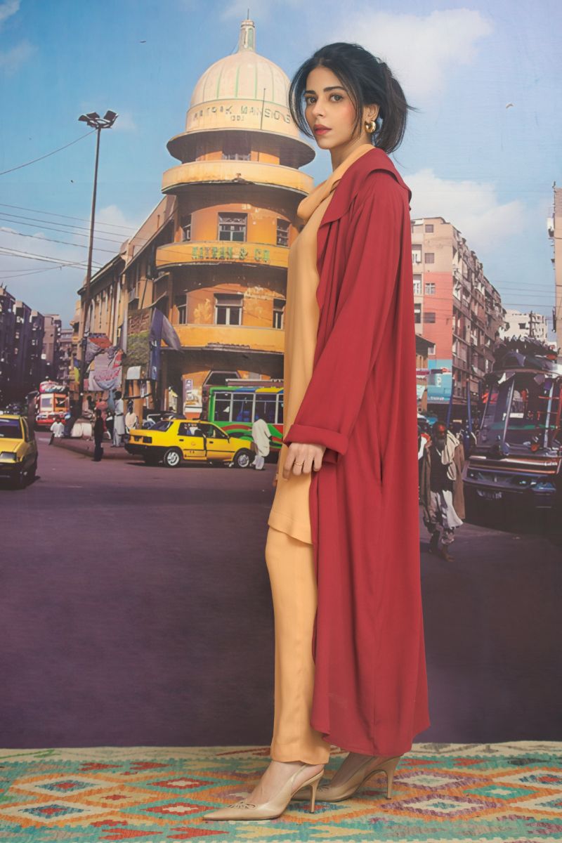 Gulabo - BURGUNDY DUSTER COAT - Burgundy - Blended Crepe - 1 Piece