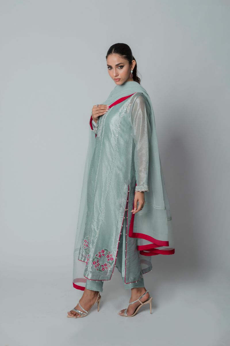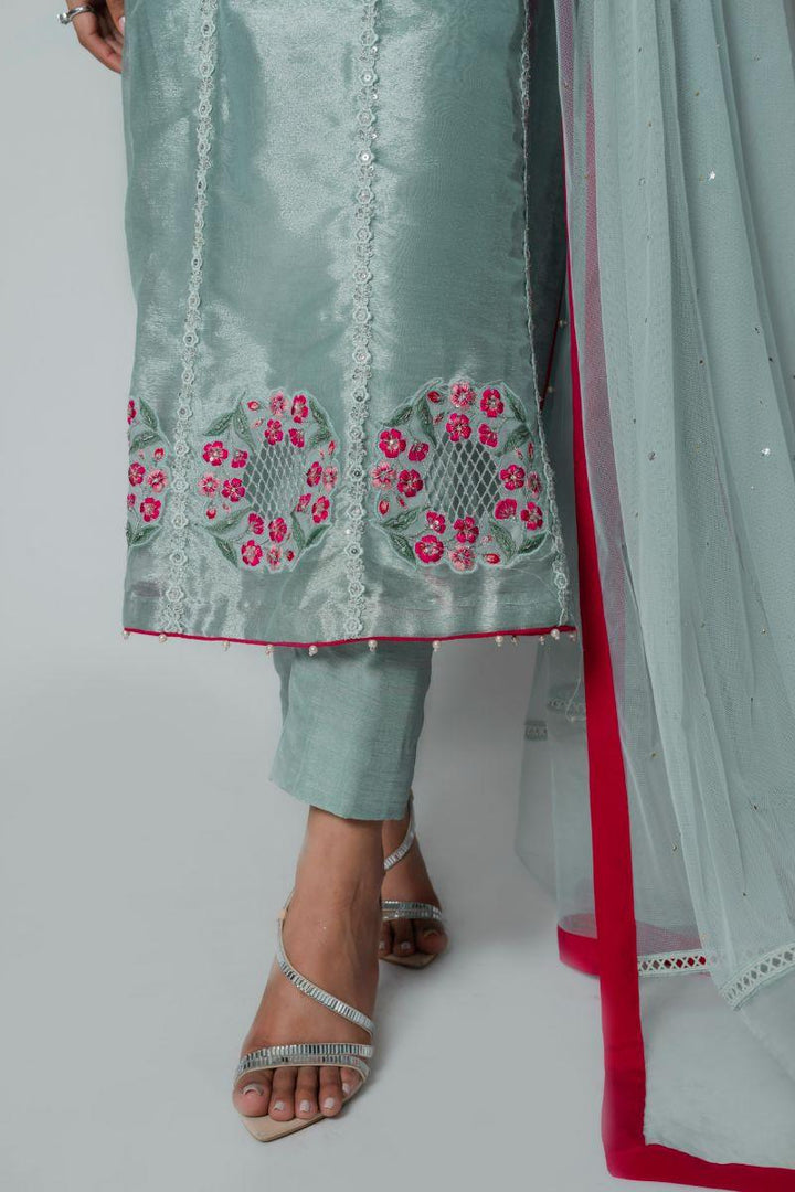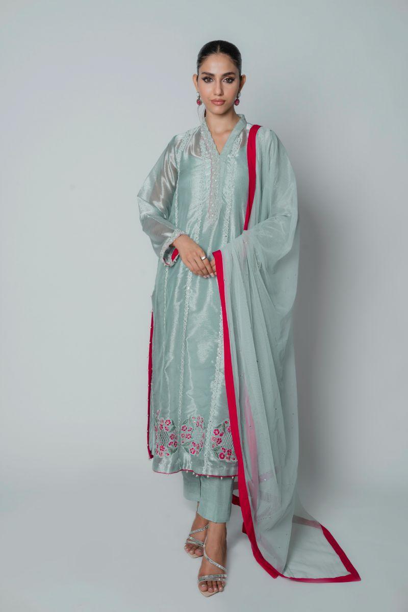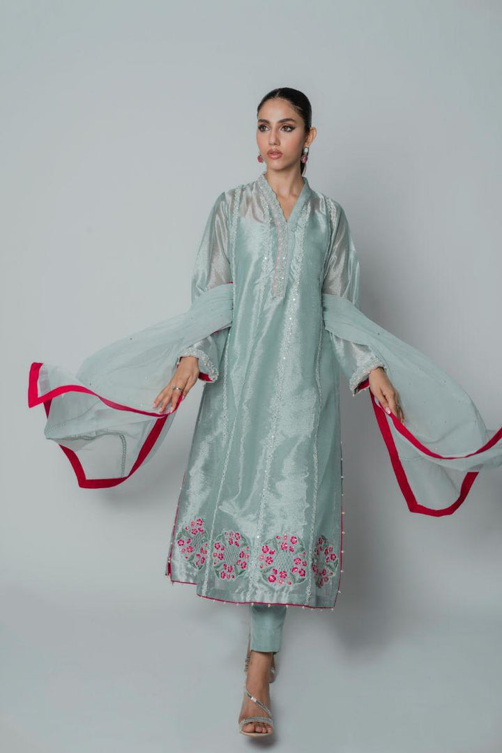 Insia Sohail - Silver Garden - Sky blue - Lama