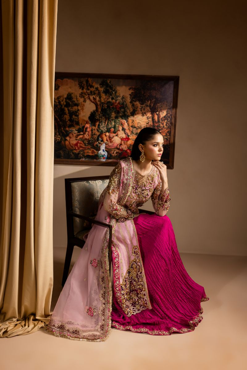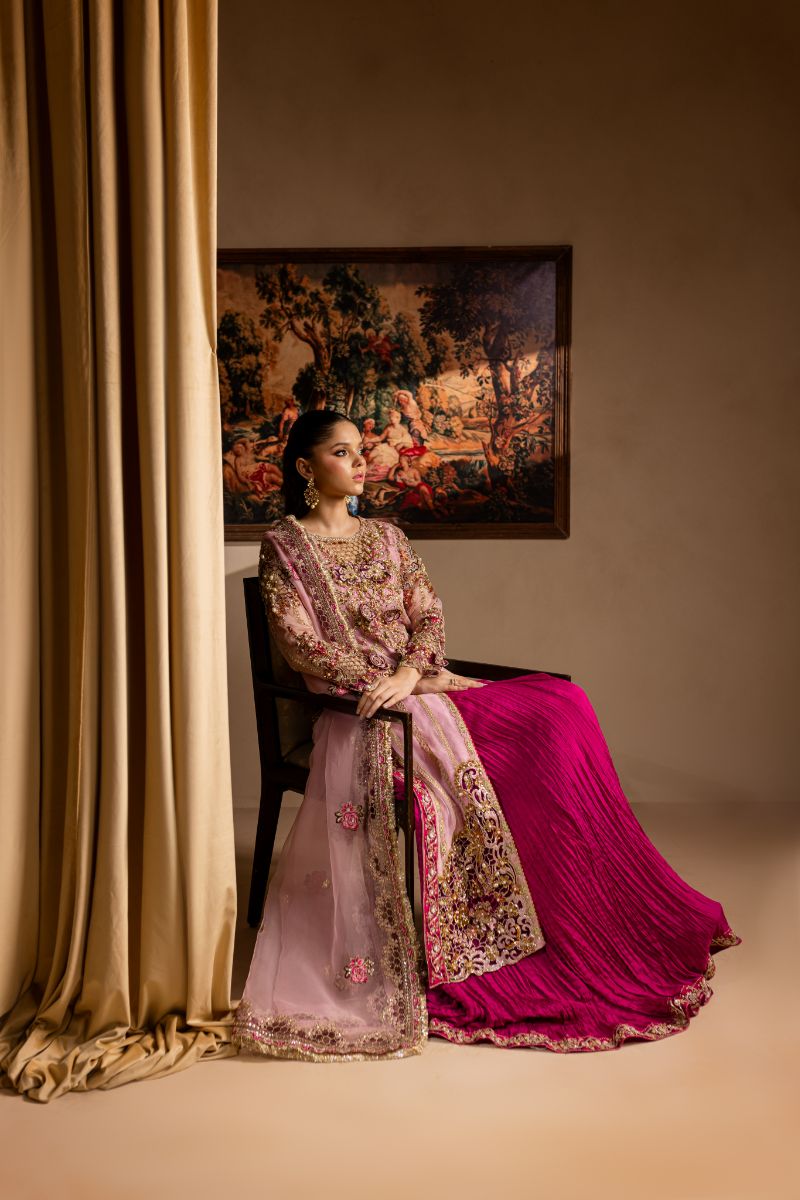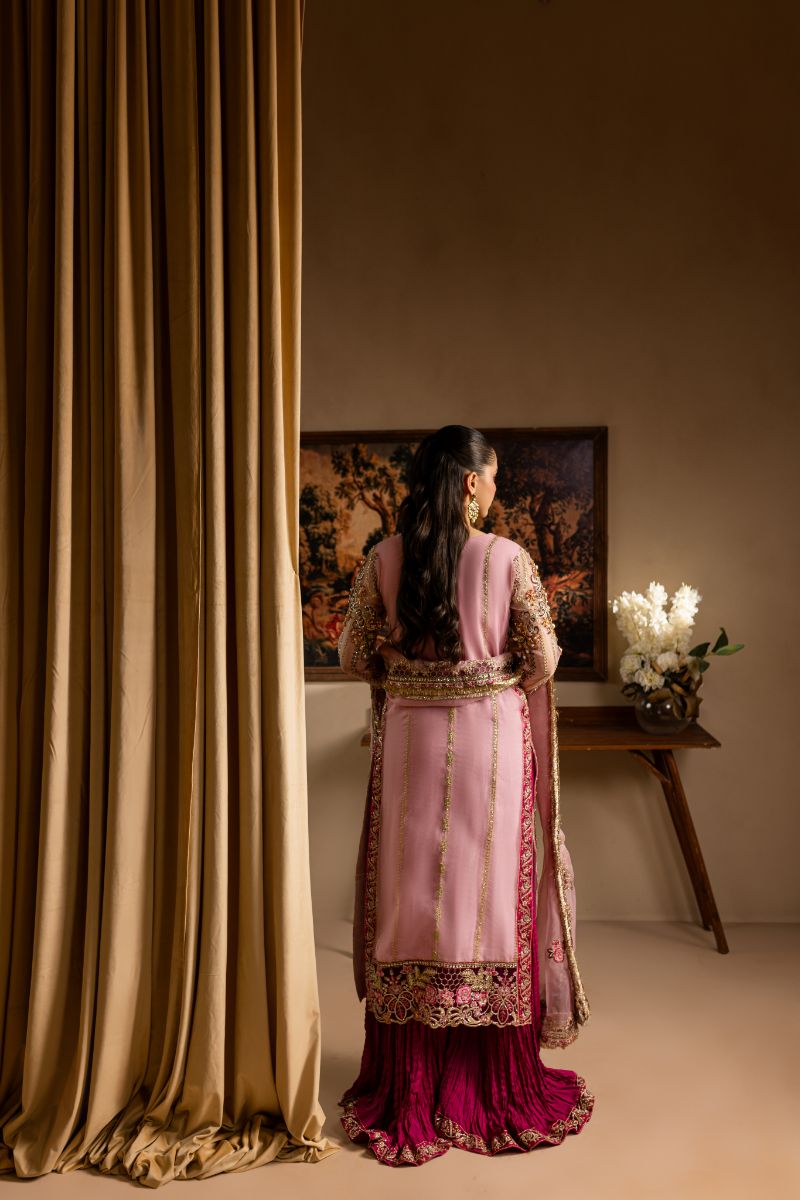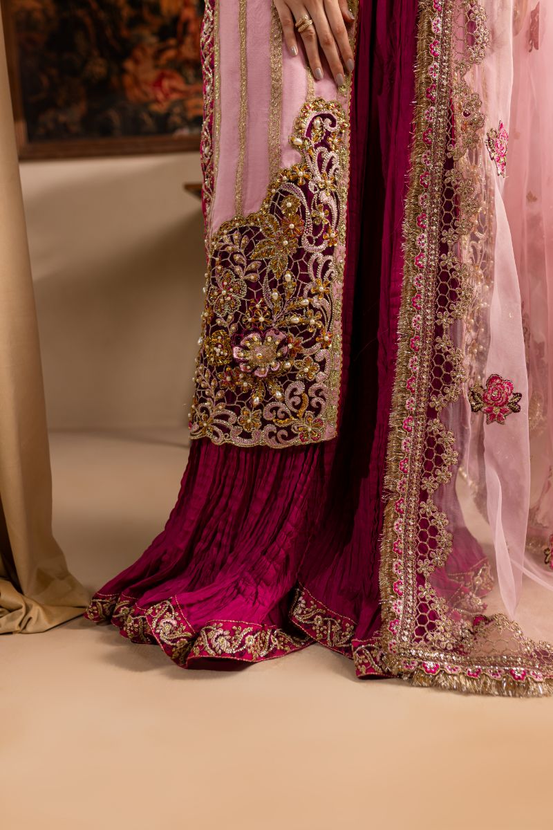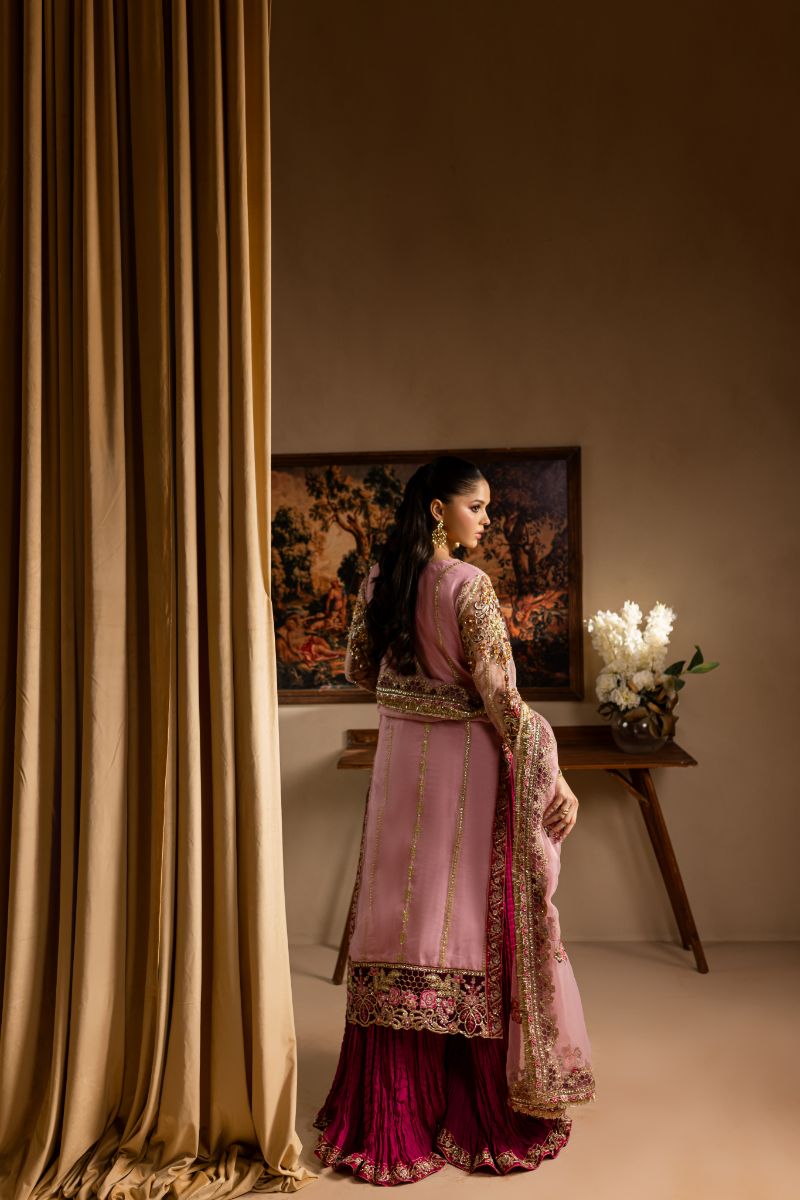 Maria Osama Khan - Zarmina - SHIRT & SHARARA - PINK - ORGANZA & PK RAWSILK - 3 Piece