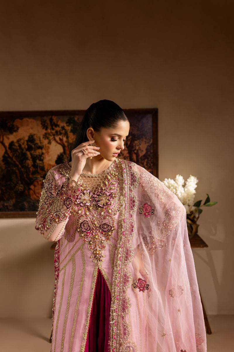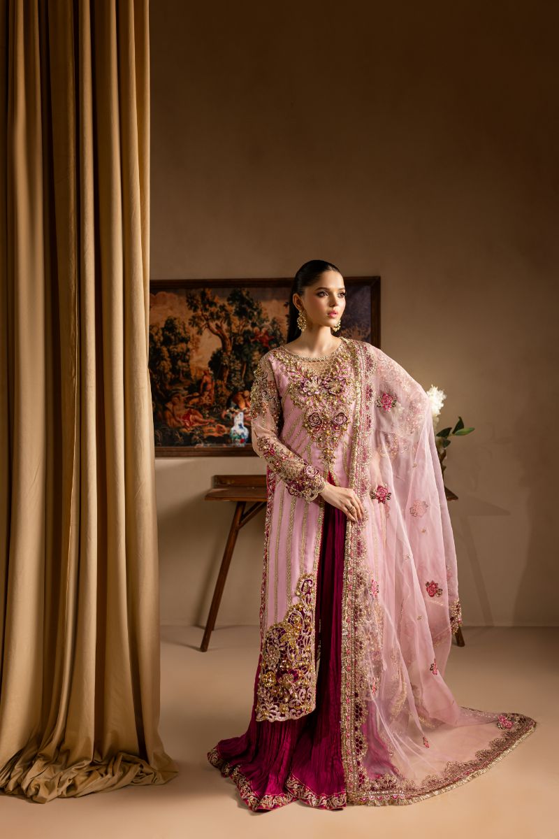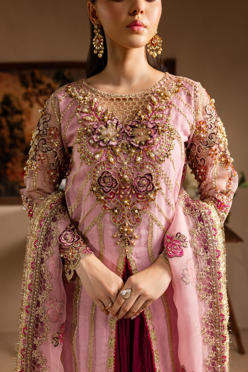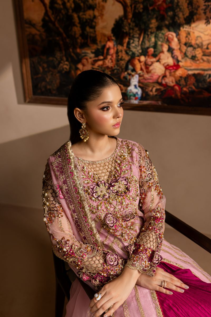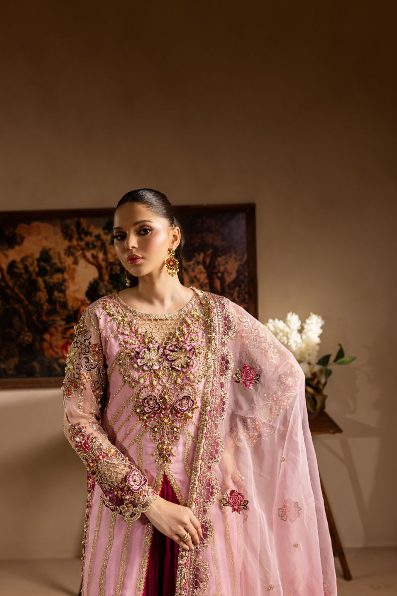 Maria Osama Khan - Zarmina - SHIRT & SHARARA - PINK - ORGANZA & PK RAWSILK - 3 Piece