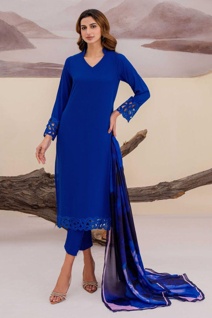 Natasha kamal -  Mabel - Cobalt Blue - Georgette - 3 Piece