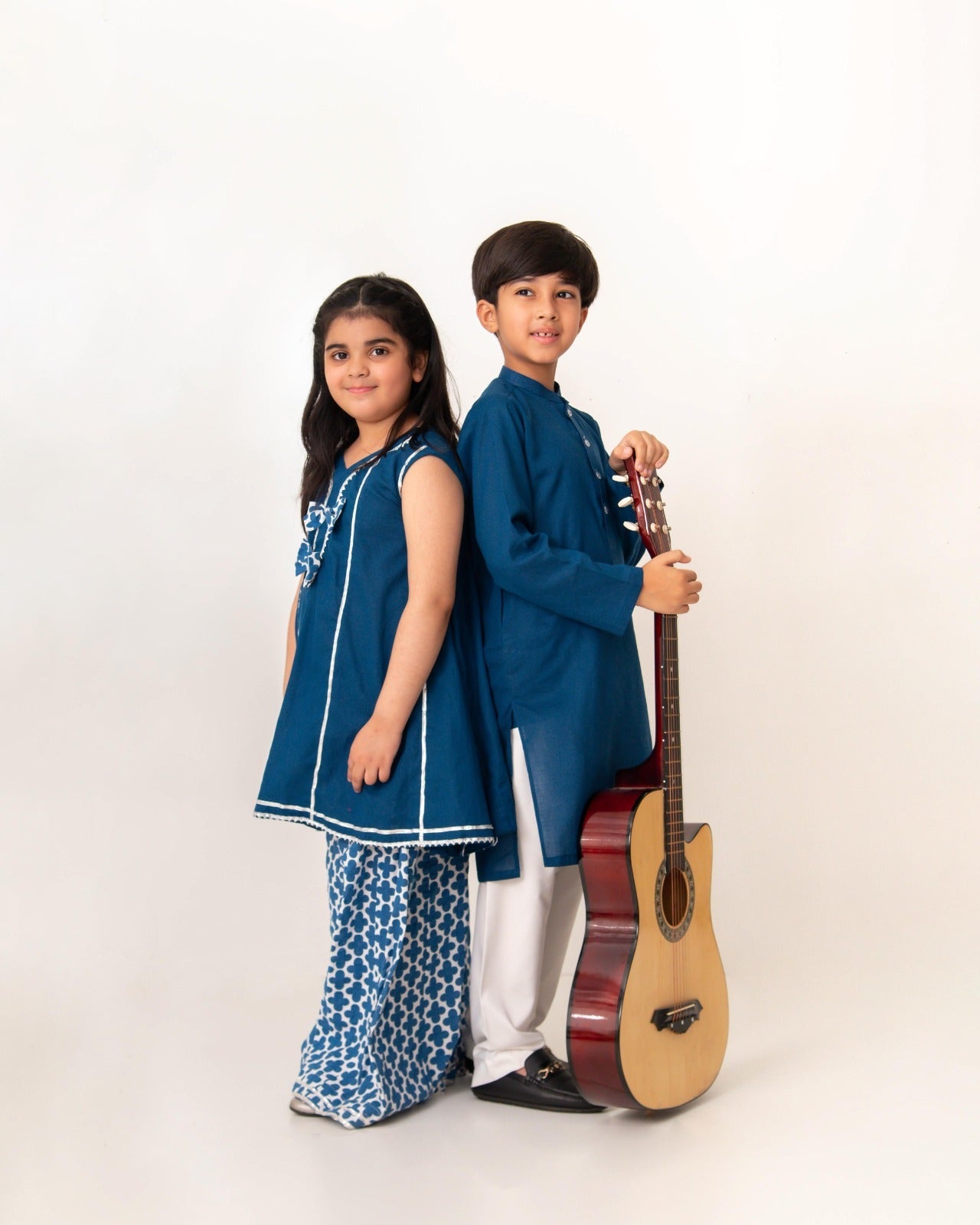Dress your little one in style with this cotton kurta, offering both comfort and breathability. The accompanying wash and wear pajama ensures easy maintenance, making this set perfect for casual outings, family gatherings, or even a day at the park.