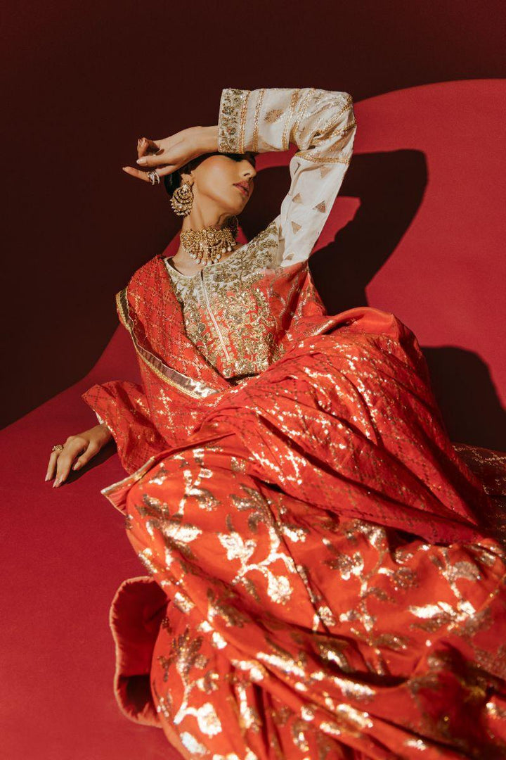This outfit features a hand-woven jacquard fabric, known for its intricate patterns and texture, crafted on a traditional loom. The ensemble includes a dupatta and shirt that have been dip-dyed, creating a gradual blend of color. The shirt is elegantly embellished with delicate sequins, adding a touch of sparkle and sophistication to the overall look. This combination of traditional weaving techniques, modern dyeing methods, and subtle embellishments makes the outfit both stylish and culturally rich, perfect for occasions where you want to showcase timeless elegance with a hint of contemporary flair.