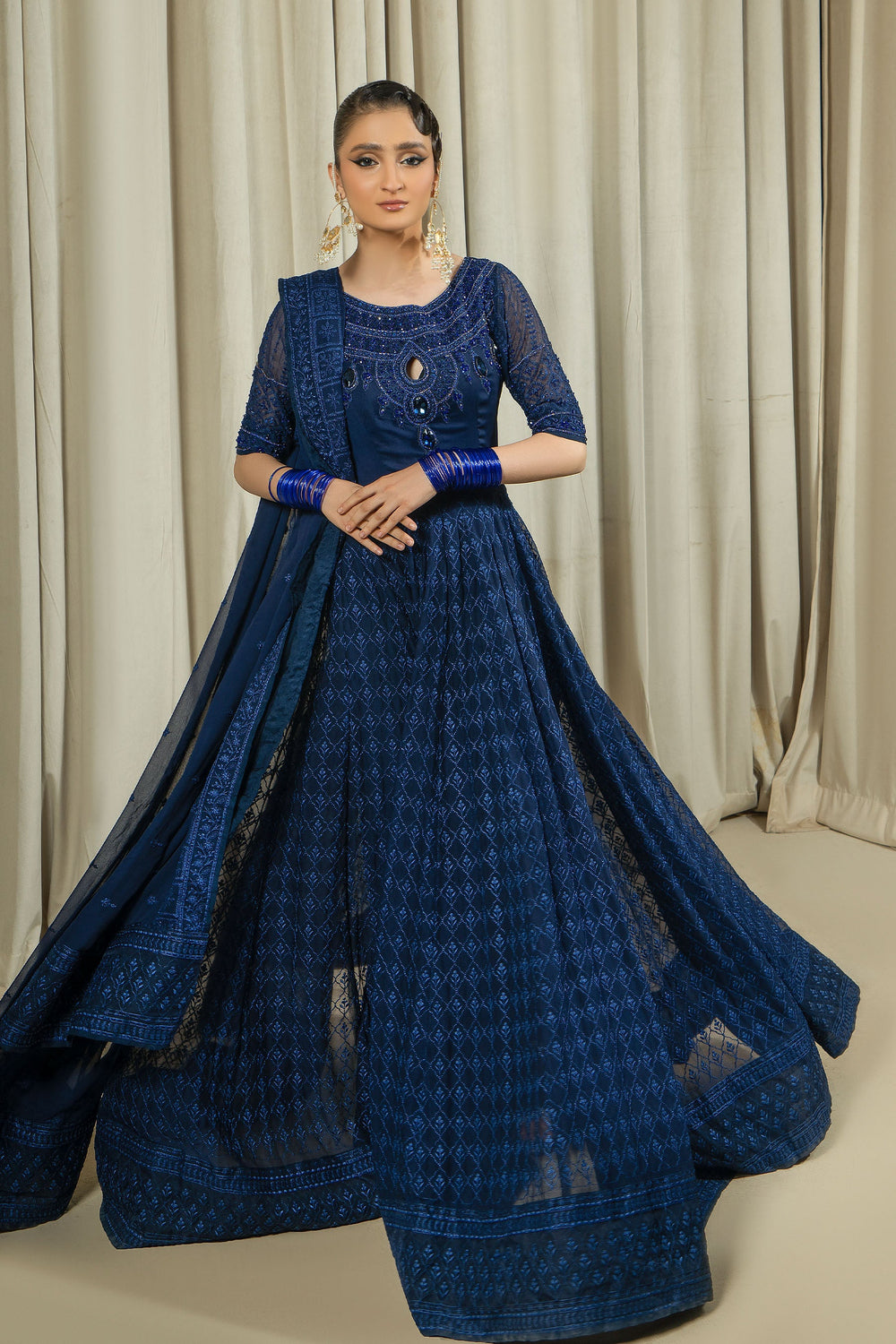 This magical maroon ensemble on chiffon is come along with embellished boat neck framed sleeves and bodice adorned with golden kora, dabka, naqshi, sitara, bethki and pearls. Heavily embellished panels are added to complete the look it comes along with raw silk sharara with border on the hem.