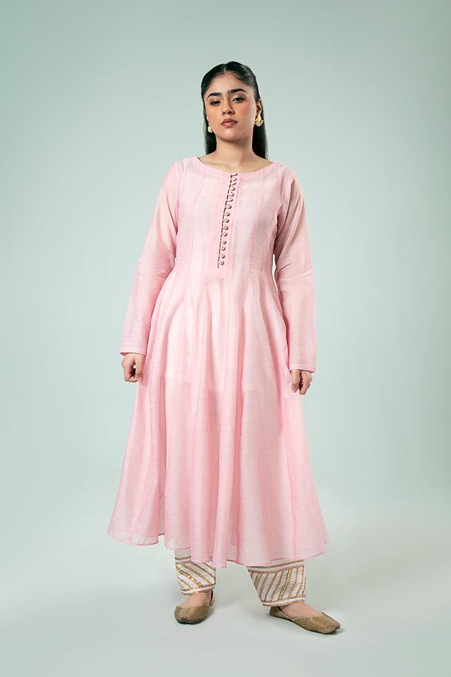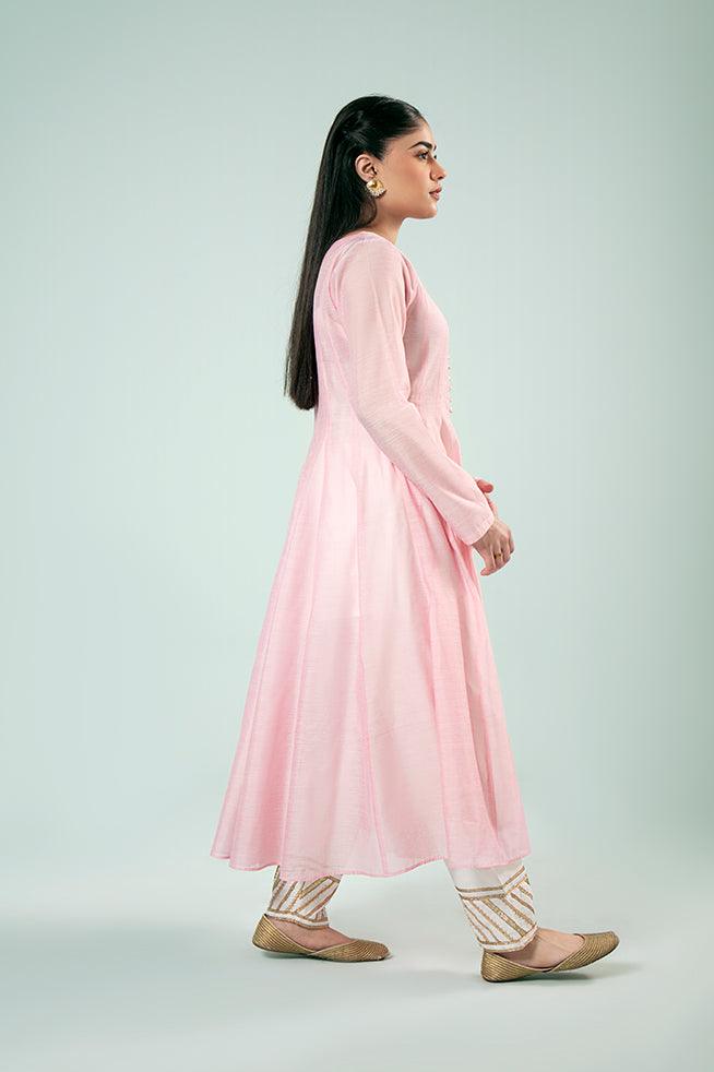 FOZIA KHALID  - Classic Pink Kali Daar - Paper Silk - 1 Piece