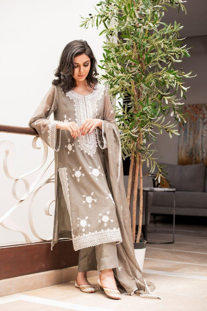 Kuli Jume - Pastel Khamak - Grey & Cream - Silk - 3 Piece - Studio by TCS