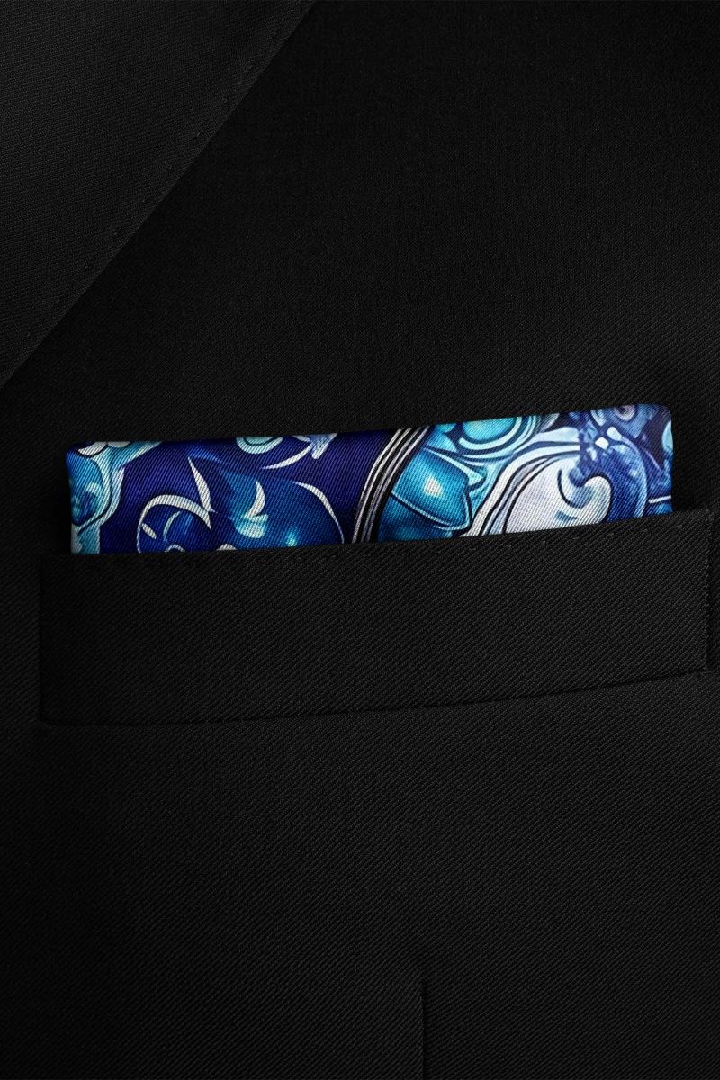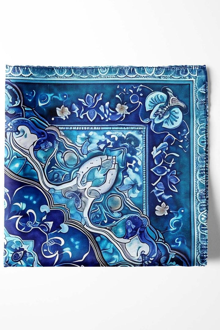 Black Wolf - PERSIAN ART SILK POCKET SQUARE - TRUE BLUE - SILK - 1 Piece