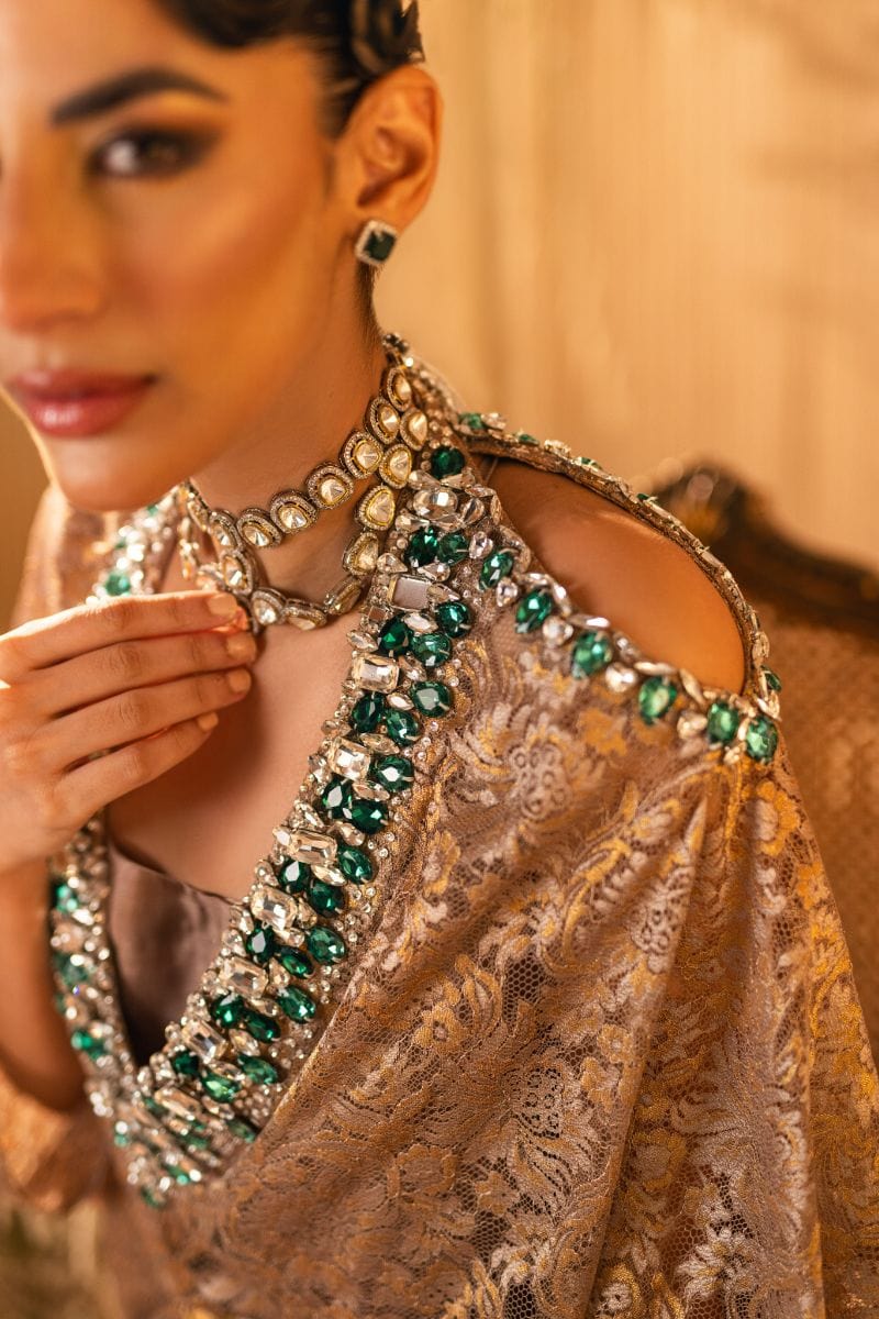 Maria Osama Khan - Sabahat - JACKET & BOTCUT PANT - HAZEL WOOD - ORGANZA & PK RAWSILK - 4 Piece