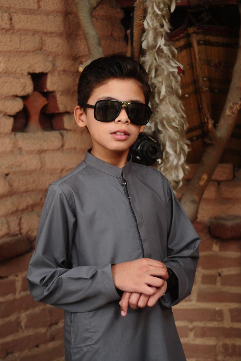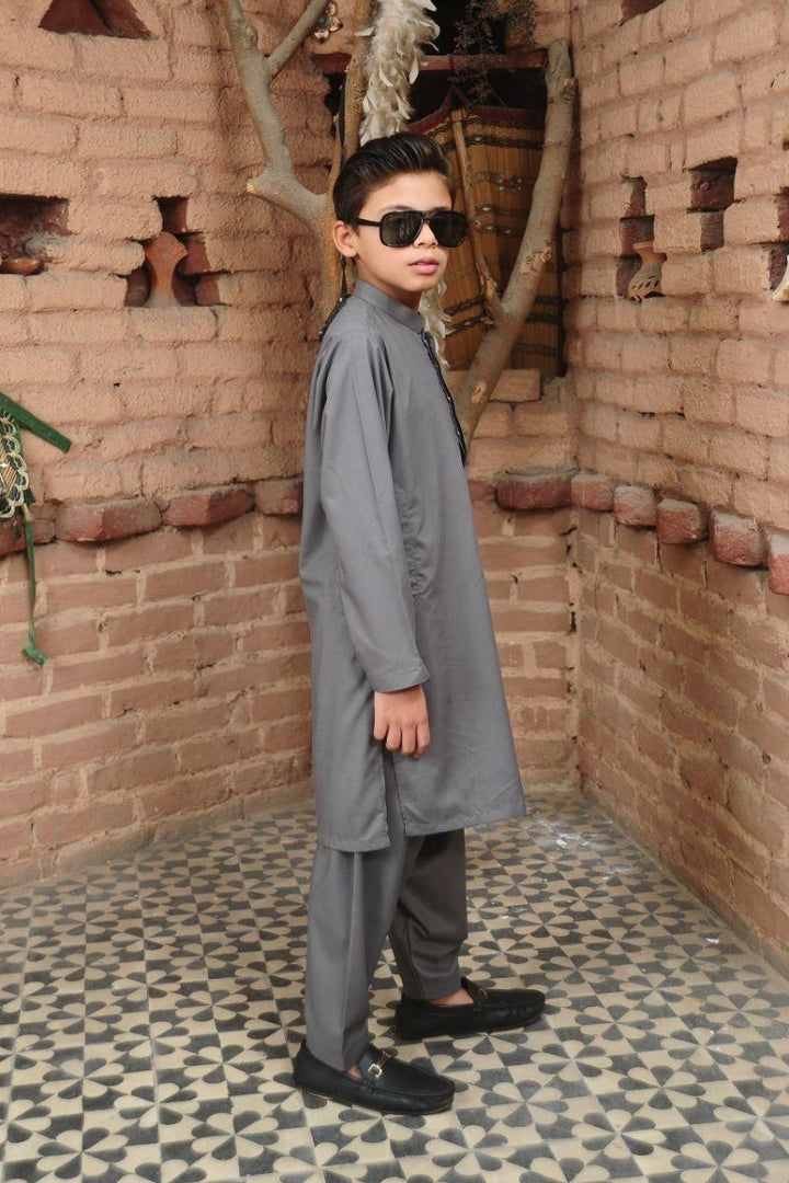 Fabric : Blended Color: Grey Season: Festive Product Category : Boys Kameez Shalwar Pants can also be made on customer request instead of shalwar