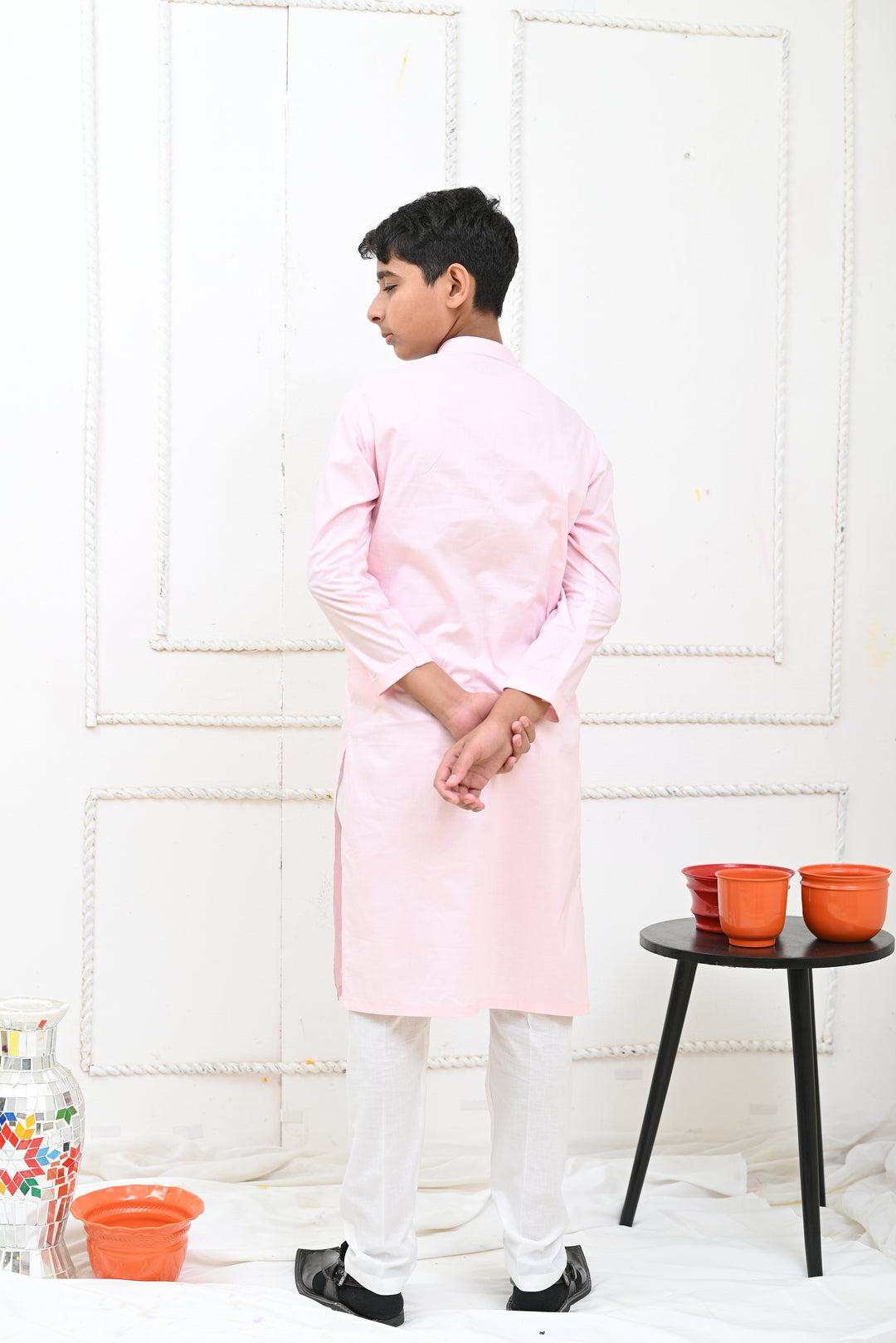 Fabric:100% Powder Pink Cotton kurta and white pajama
