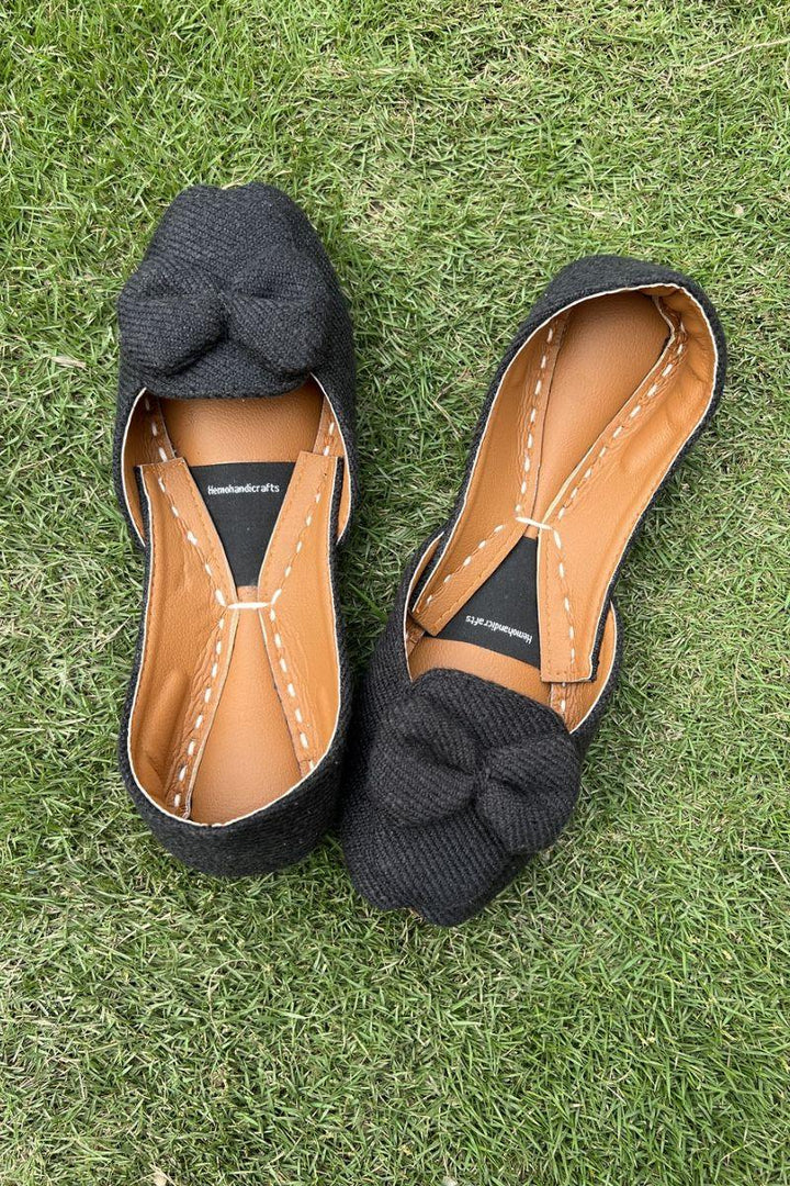 Loafers crafted from rich, black jute fabric adorned with a charming little bow, elevating their aesthetic appeal. These delightful shoes not only enhance their beauty but also offer a soft and comfortable feel, ensuring ease of wear. Versatile enough to complement any outfit, these loafers effortlessly combine style with comfort for a perfect blend. These are light weight with durable sole, soft cushioned, ECO friendly and blister free.