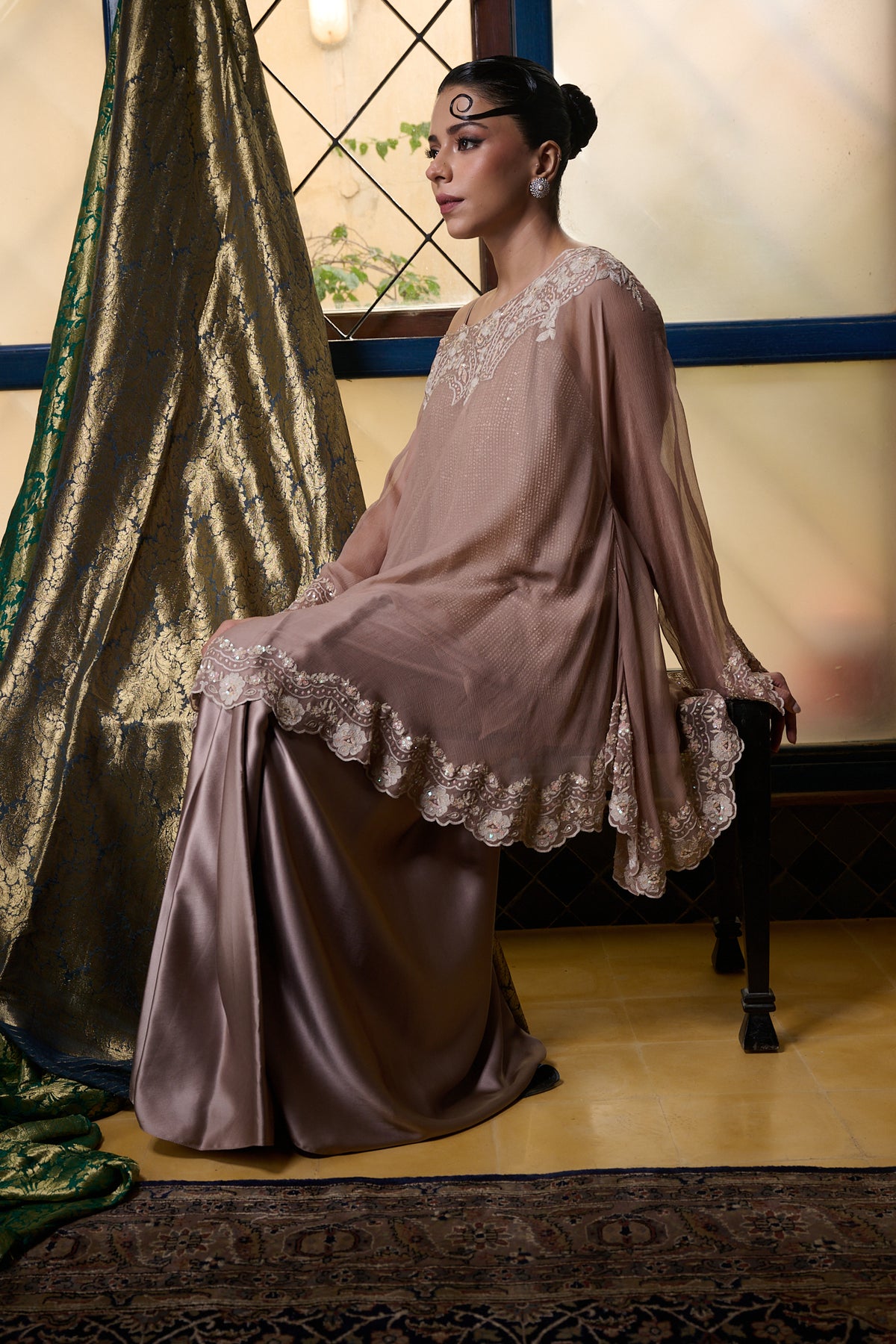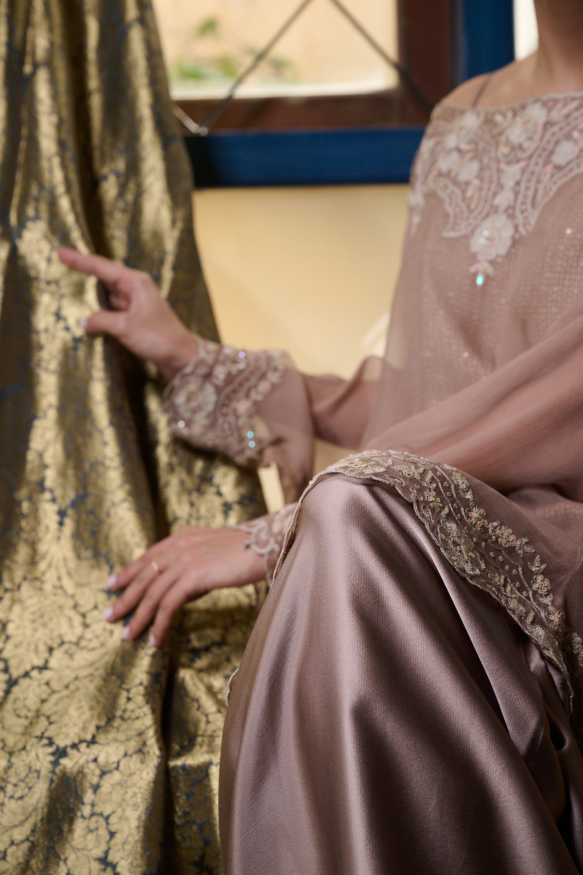 Maheen Khan - Venetian Lace  - DUSTY PINK - BLENDED SILK - 3 Piece