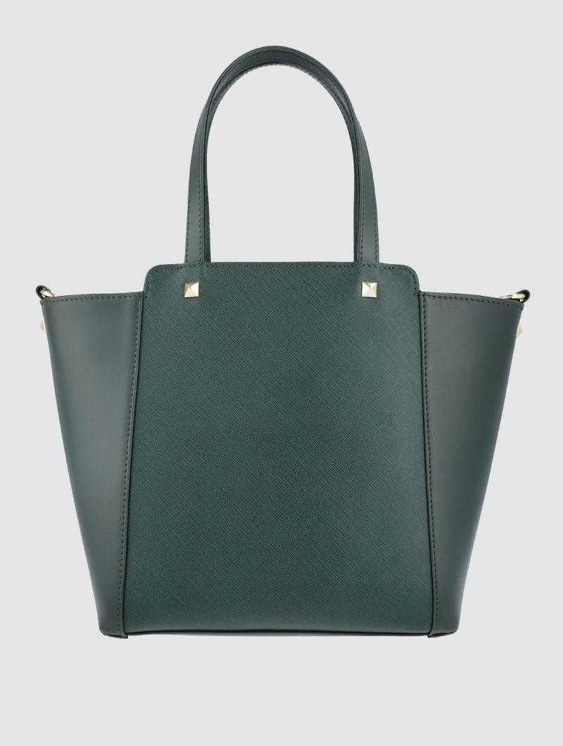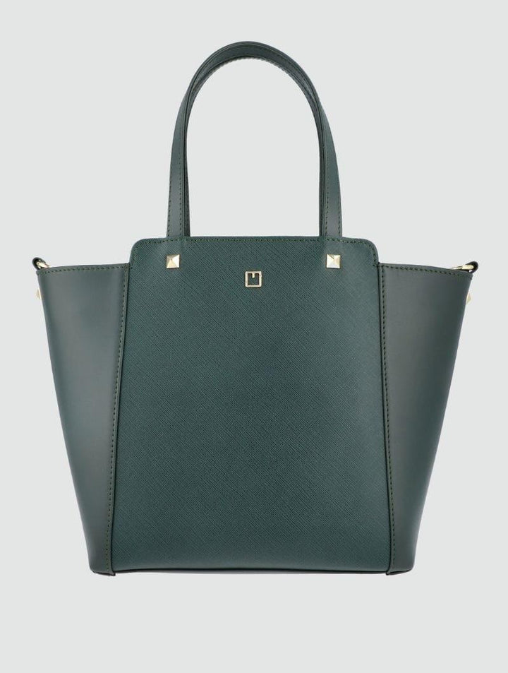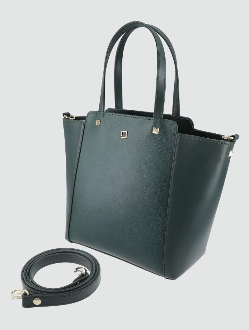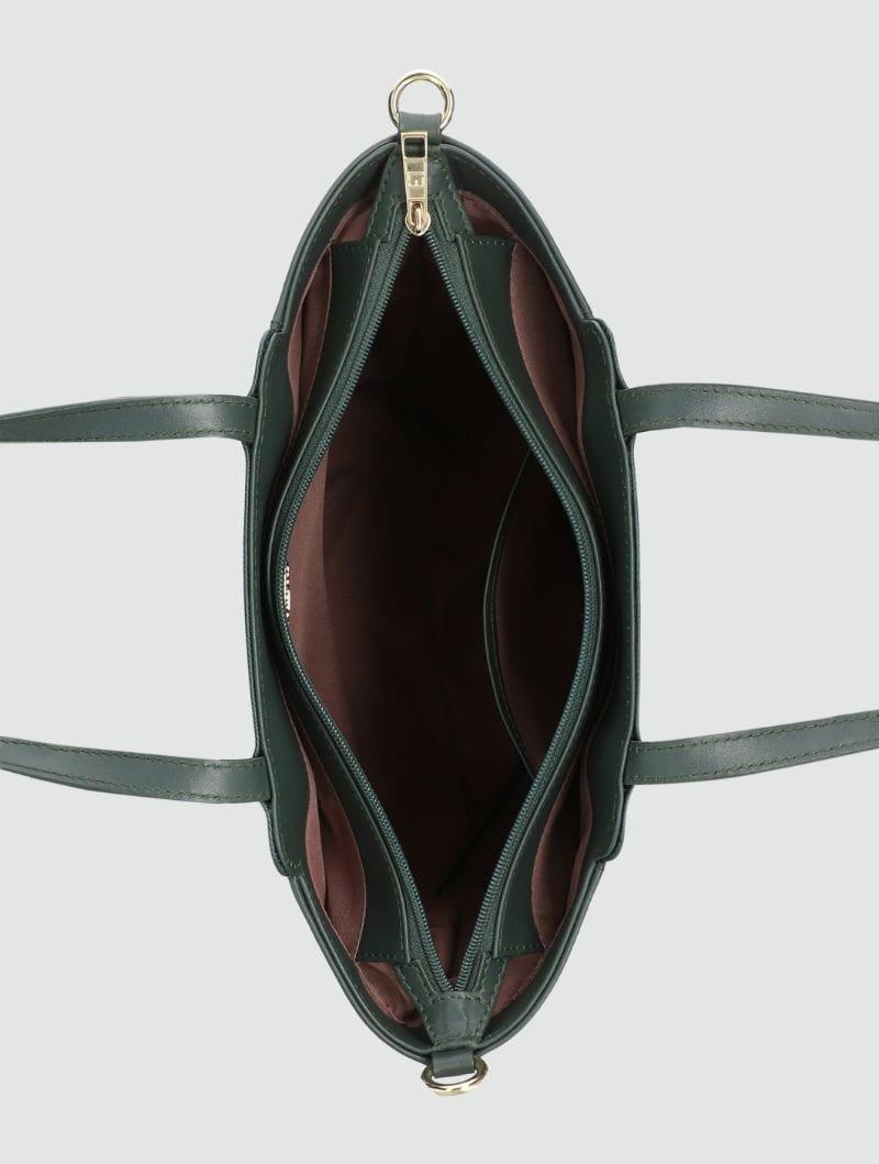 Top zip compartment, top two open compartment, double flat handles, one interior zip pocket, one interior slip pocket, detachable shoulder strap. 340mm x 115mm x 250mm.