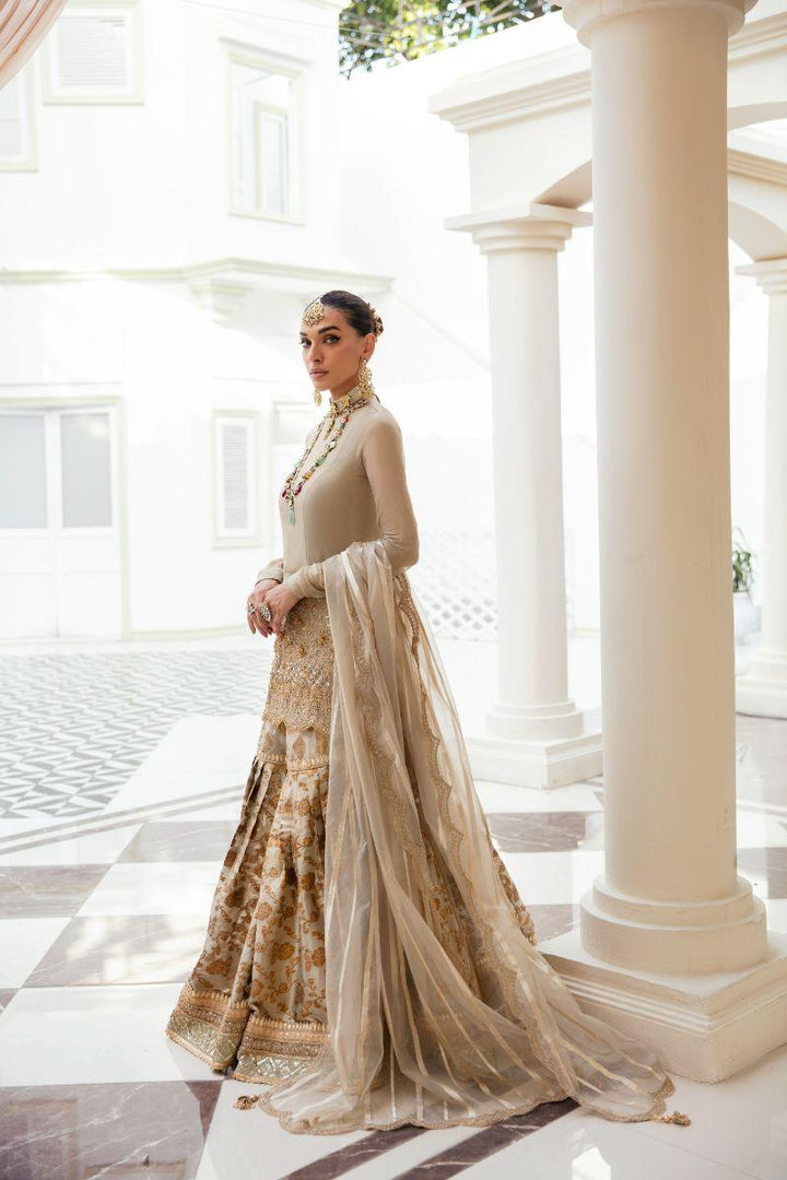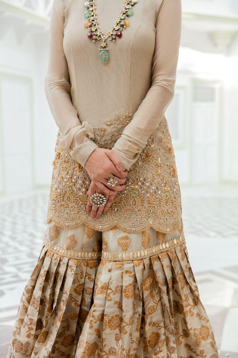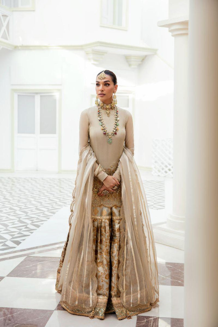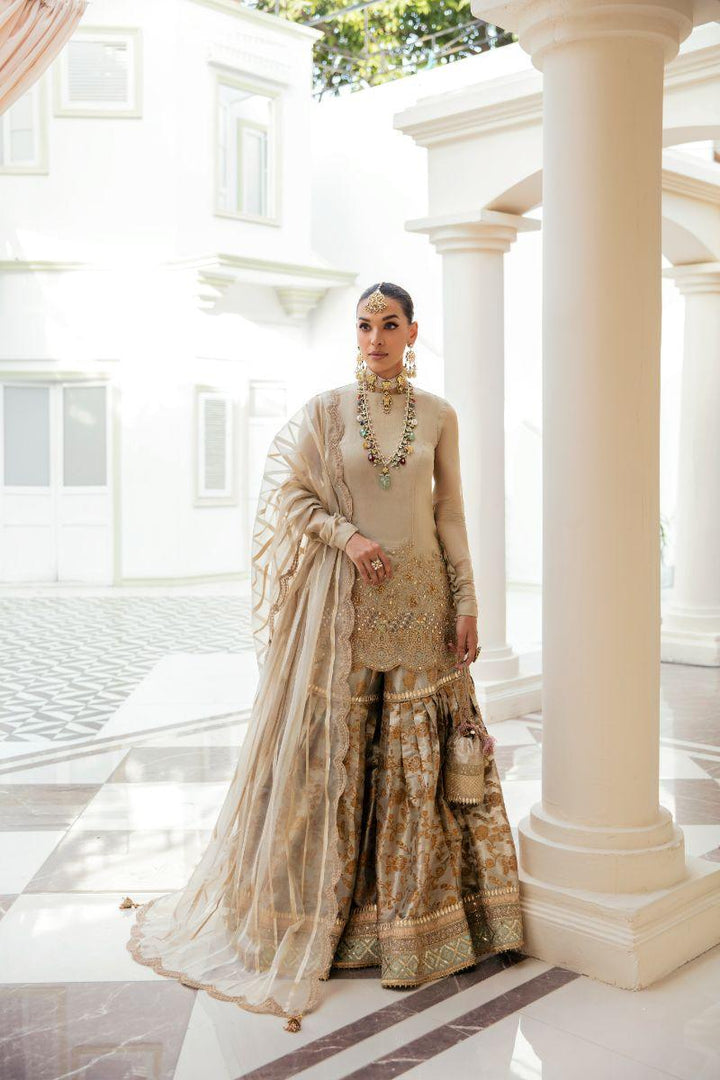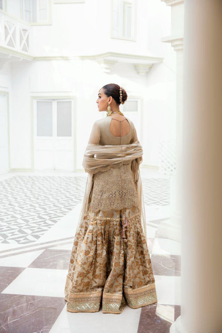 Majestic Opulence is the perfect choice to make an appearance this festive season. A breathtaking Masoori chiffon short shirt stands as a testament to the harmonious fusion of art and class, enriched with opulent embellishments and meticulous Tilla hand-work. This ensemble is perfectly harmonized with an exquisite Gharara adorned with embellished traditional borders. Completing the ensemble is an elegant dupatta, gracefully complementing the entire majestic look. Shirt: Premium Masoori Chiffon ( length 32’’) Gharara: Pure Self Tissue ( length 46'') Dupatta: Premium Tinsel organza ( 2 yards 30") All Fabrics are manufactured to the highest standards of quality that are MS approved