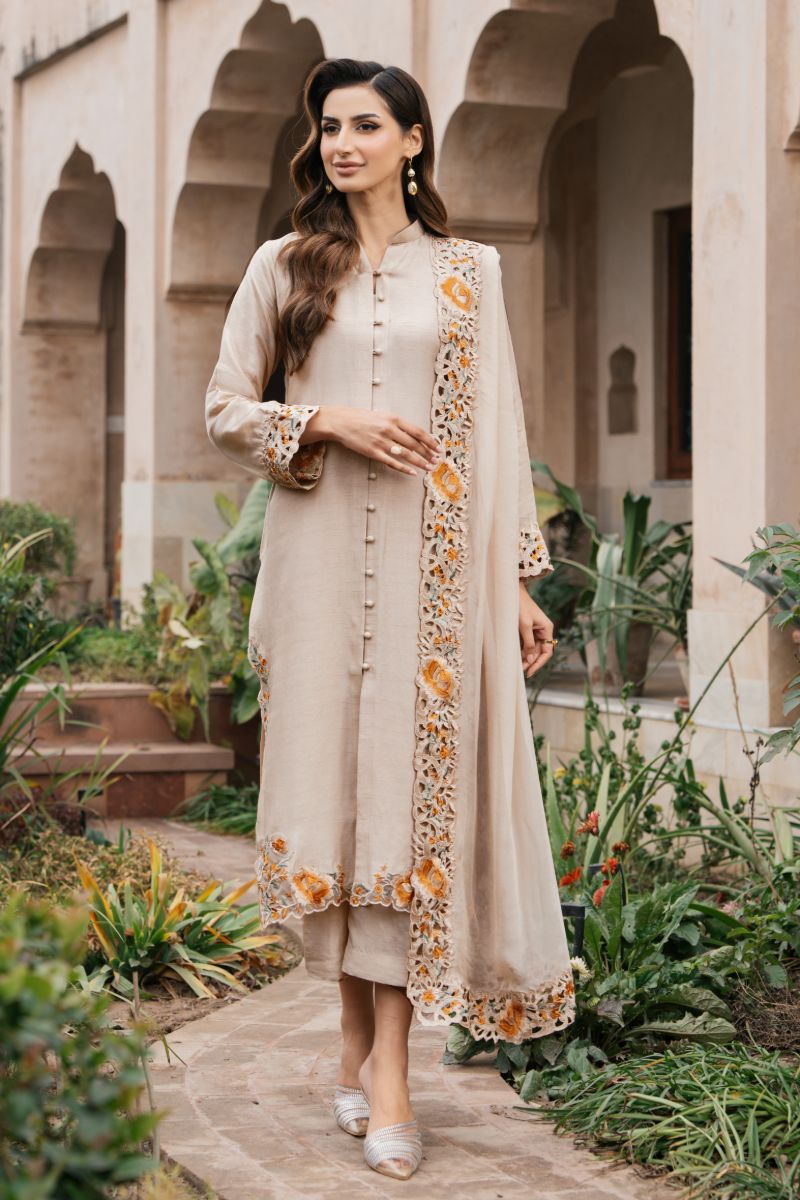 Natasha Kamal - BISQUE - beige - Silk & Chiffon - 3 Piece