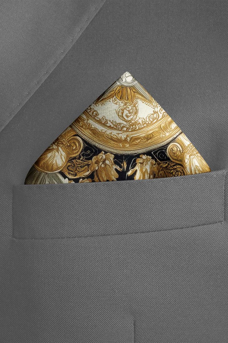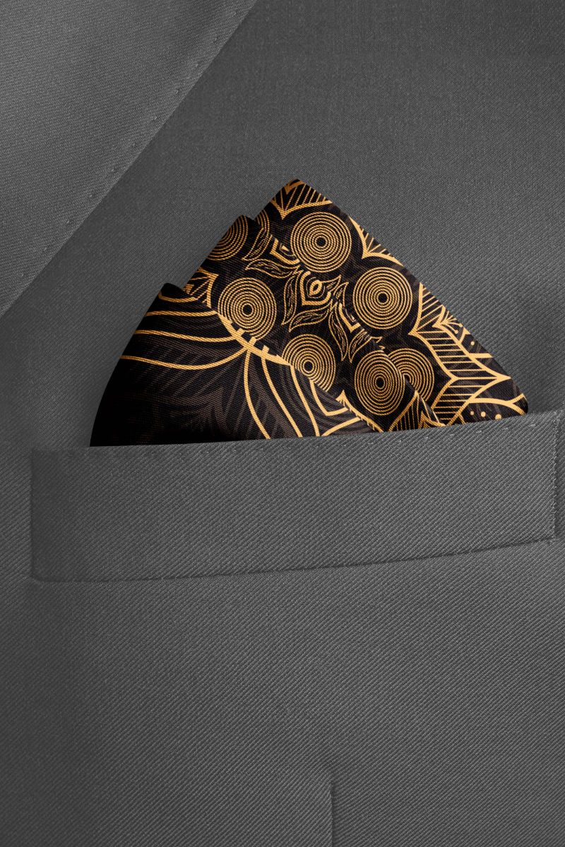 Black Wolf - BLACK AND GOLD ORNAMENT SILK POCKET SQUARE - BLACK - SILK - 1 Piece