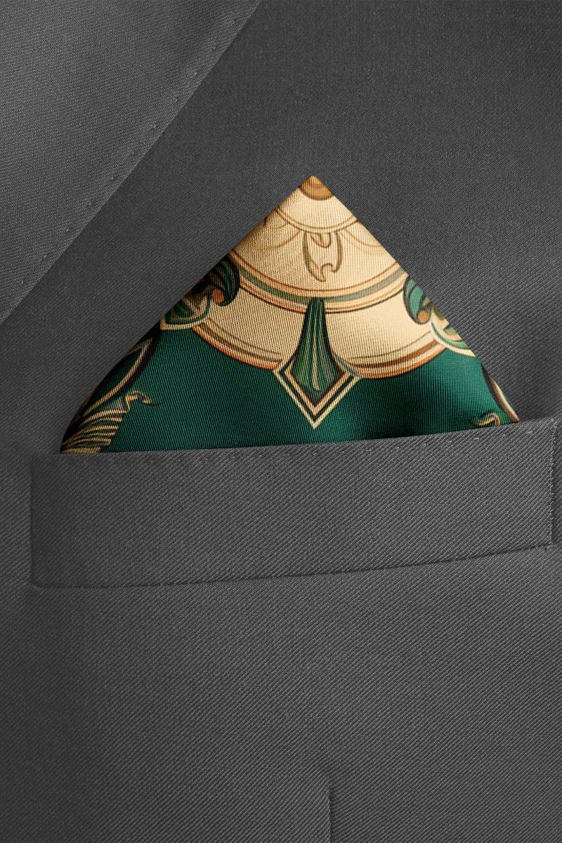 Black Wolf - VINTAGE GREEK SILK POCKET SQUARE - GREEN - SILK - 1 Piece