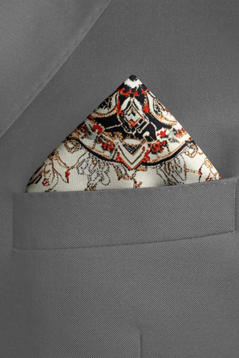 Black Wolf - VINTAGE DAMASK SILK POCKET SQUARE - OFF WHITE - SILK - 1 Piece
