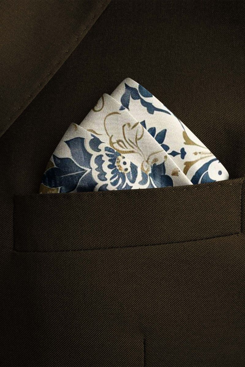 Black Wolf - CHINTZ SILK POCKET SQUARE - ROYAL BLUE - SILK - 1 Piece