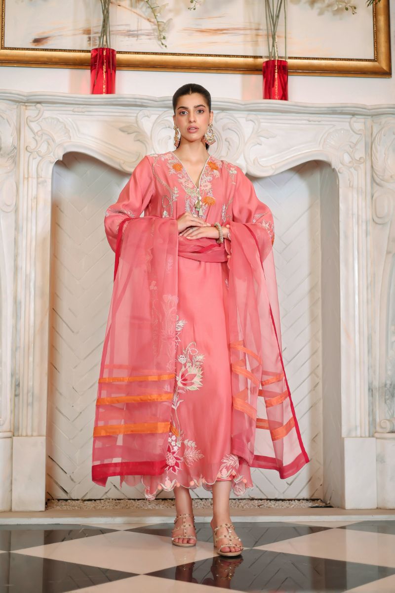 Insia Sohail - Petals - Powder Peach - Georgette - 2 Piece