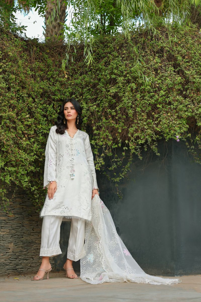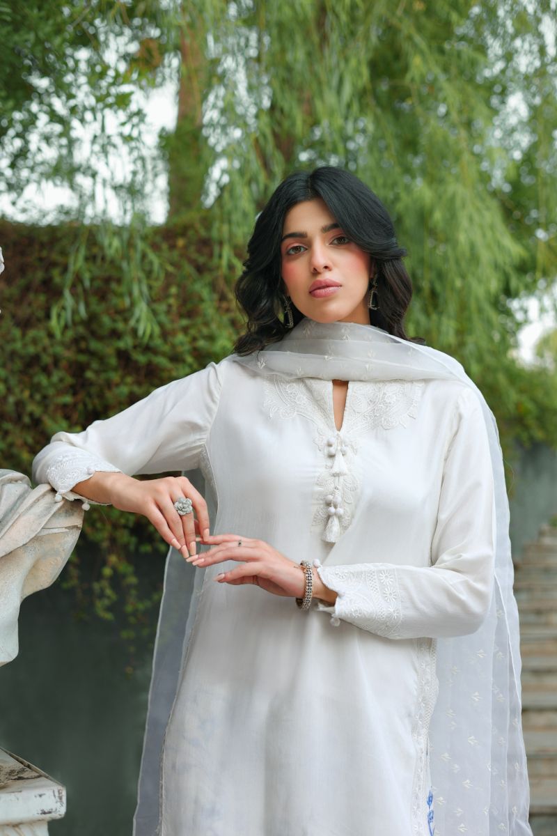 Alishba Kashif - Elan Blanc - White - Viscose Silk - 3 Piece