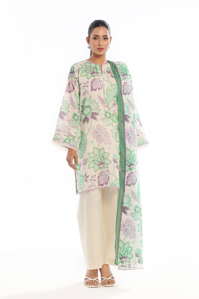 Oaks - Printed Unstitched Masoori Lawn Green  - 3 Piece