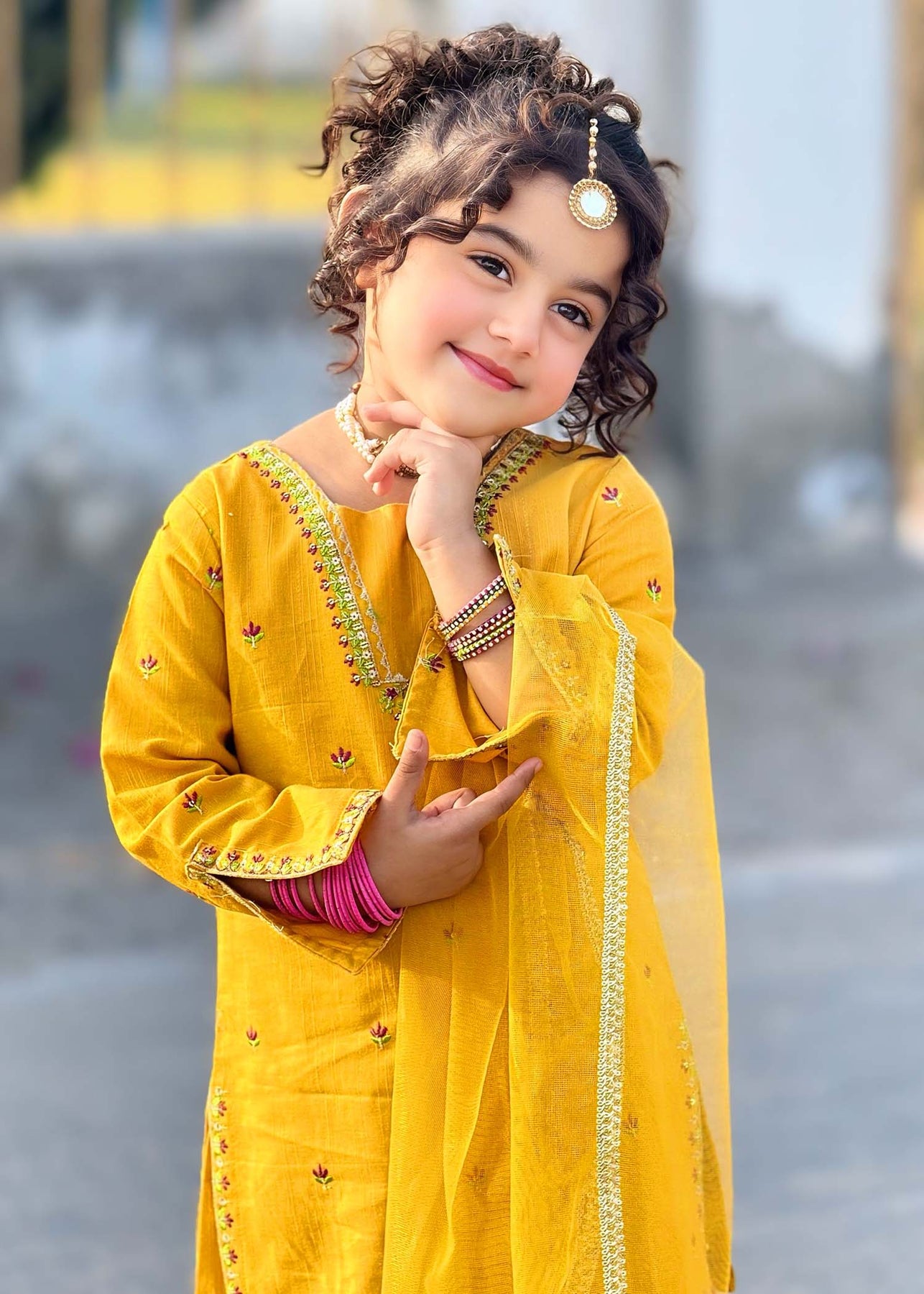 Modest - Embroidered Khaddar Suit For Girl - Yellow - 3 Piece