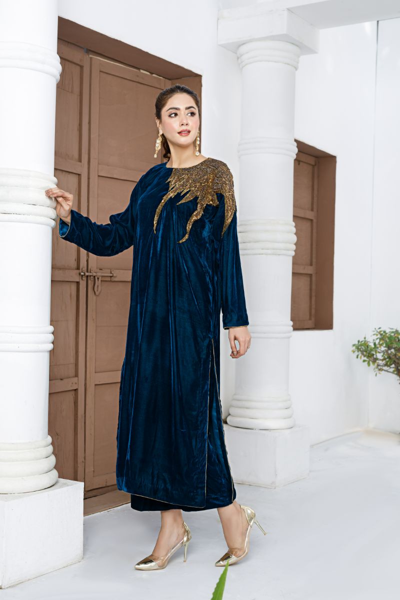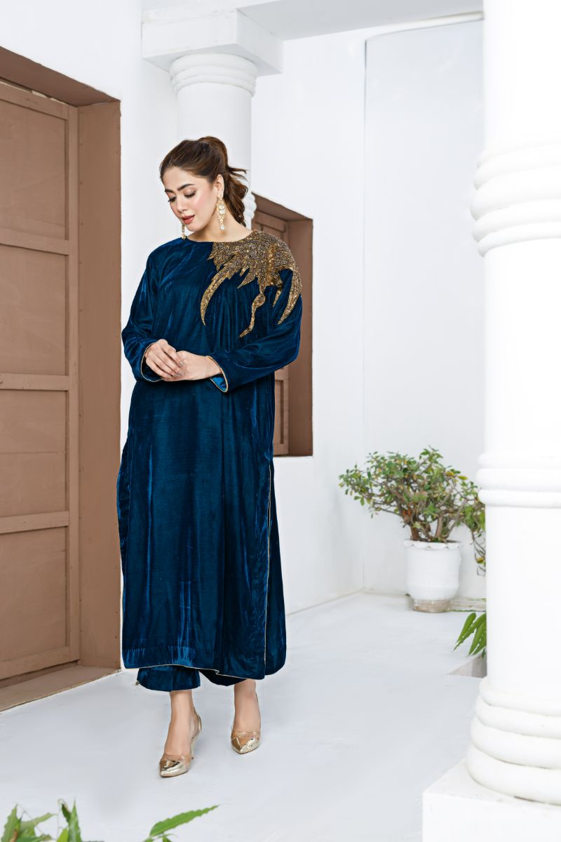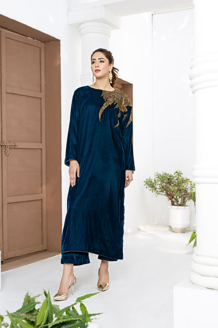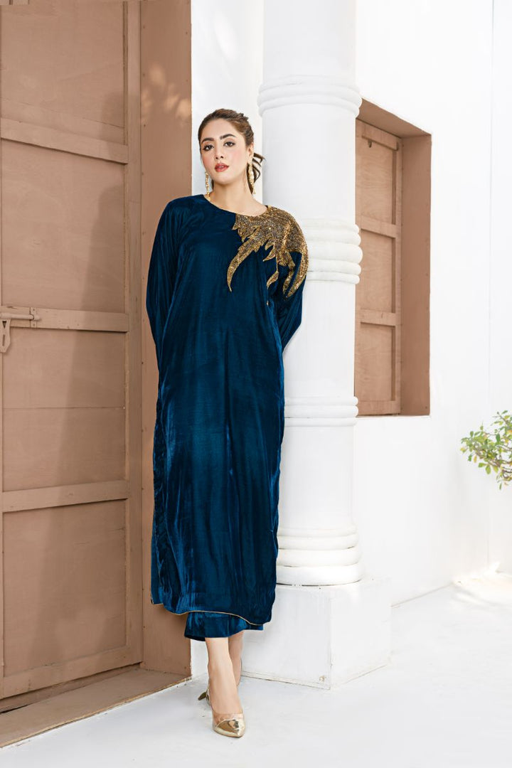 Anayra Amal - Falak - Teal - Velvet - 2 Piece