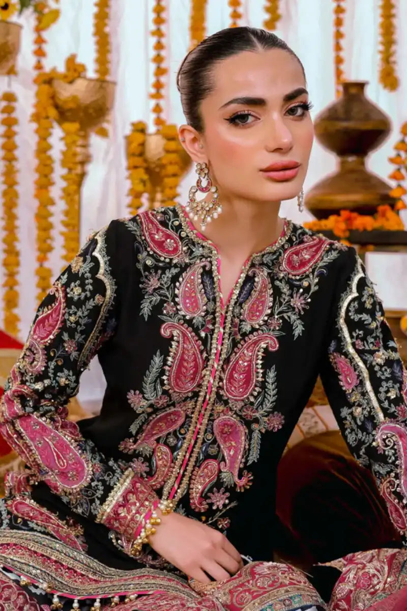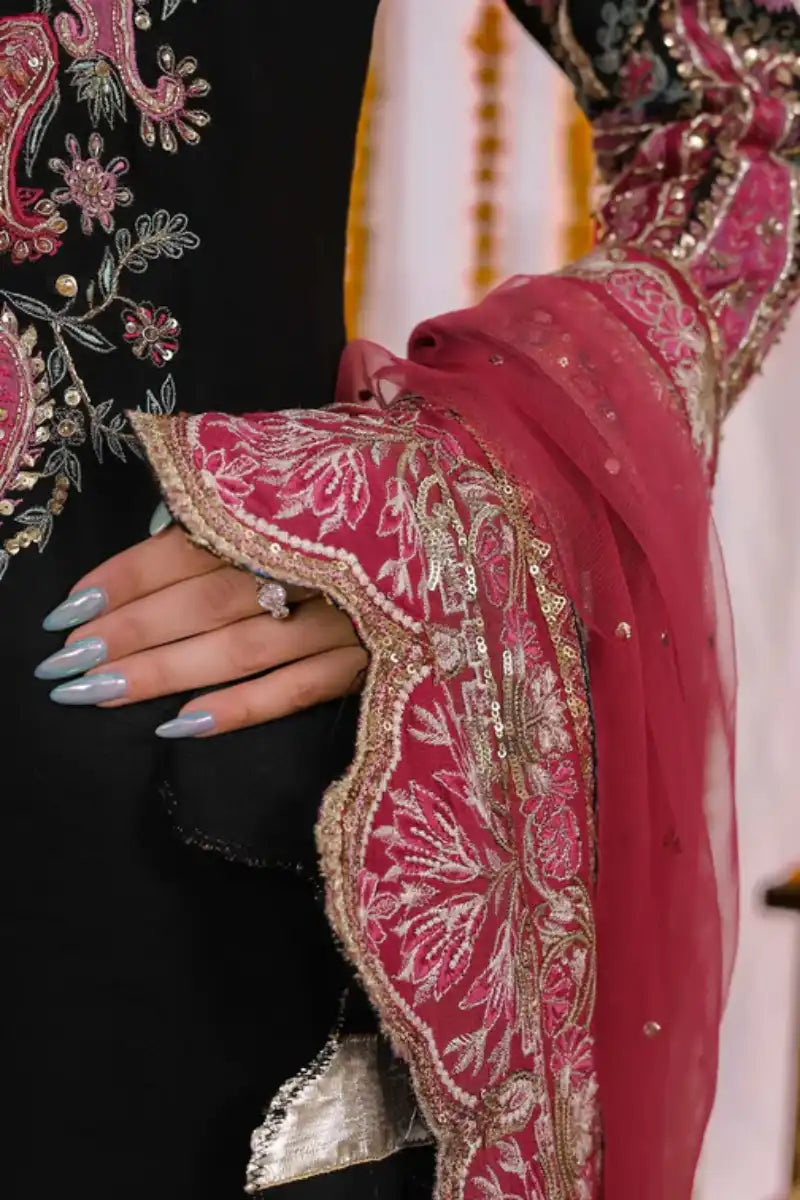 Reema Ahsan - Alizay - Raw silk, Shamoos & Net - Black & Hot Pink - 3 Piece