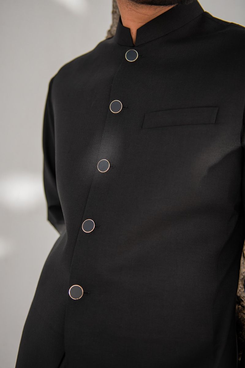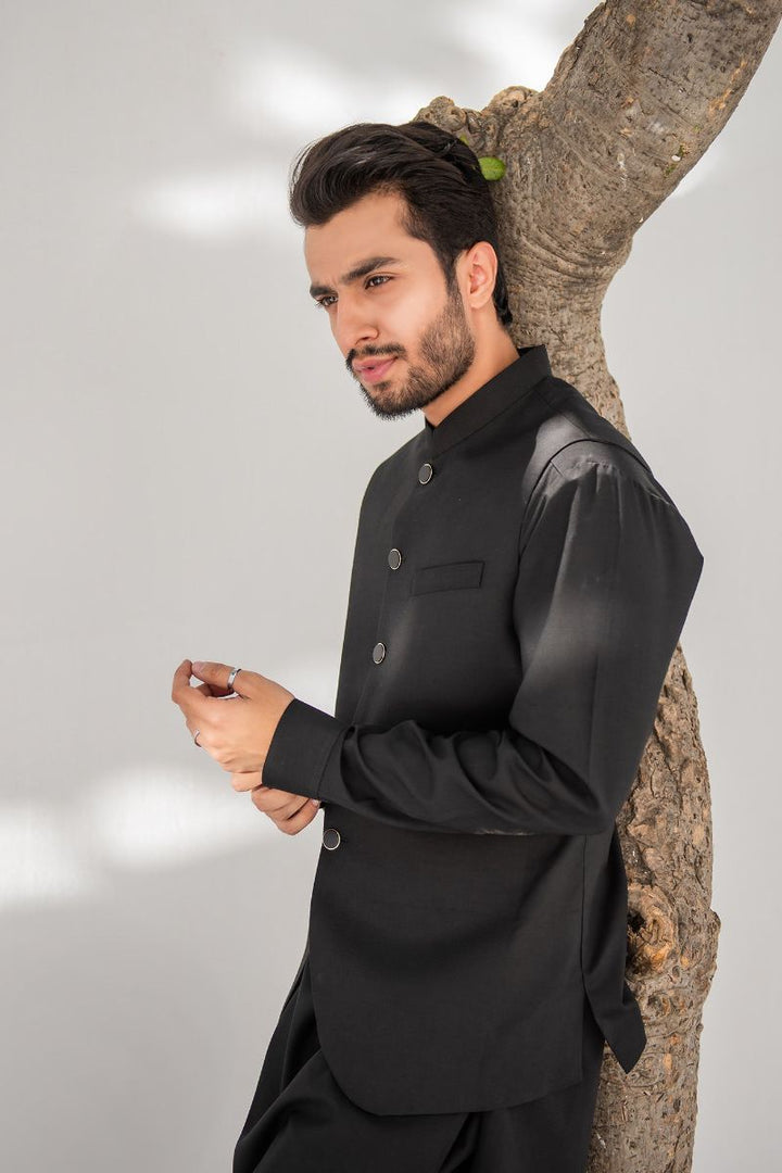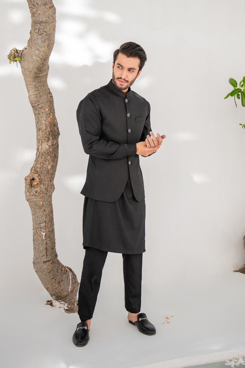 Shahjahan - Wash & Wear - Black Kurta Trouser & Waistcoat - 3 Piece