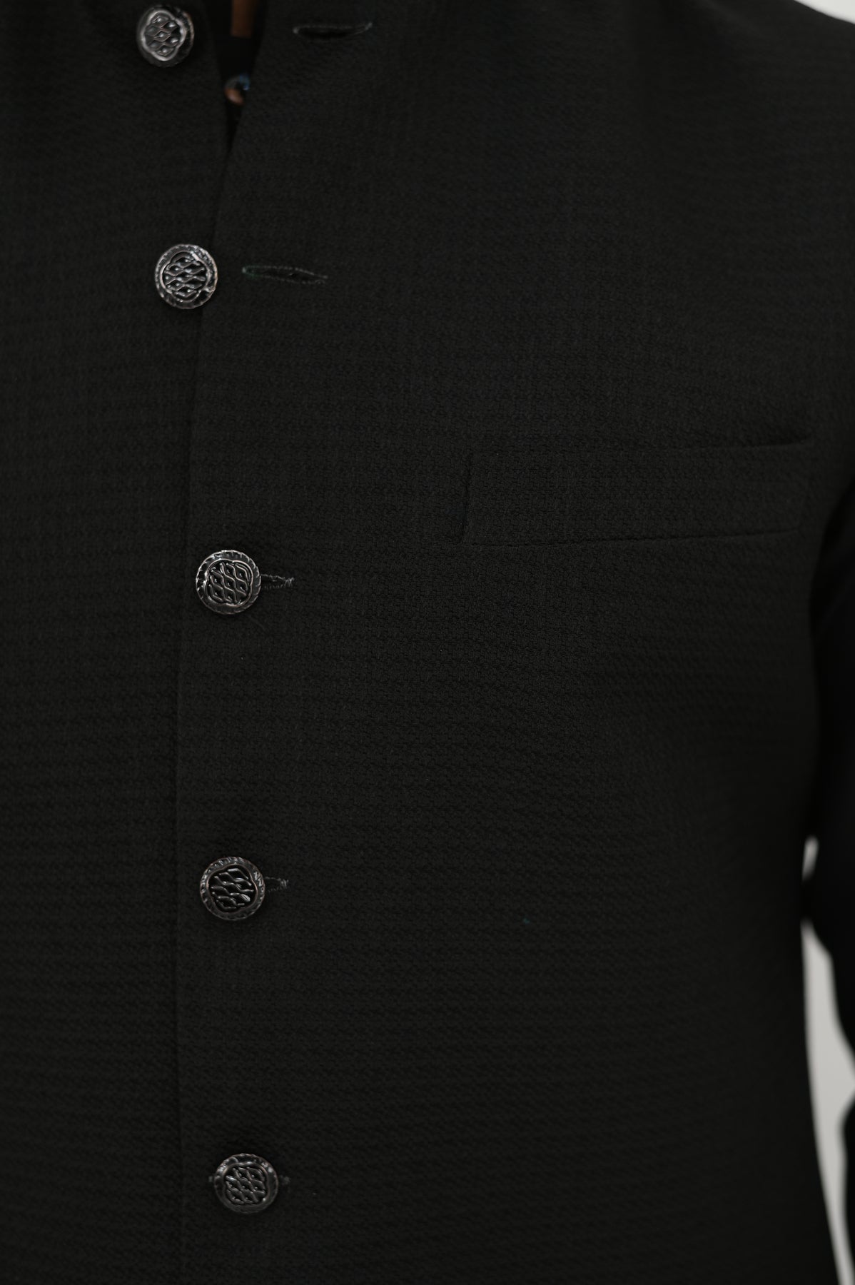 Elegant blended Black Kurta & Shalwar and paired with Black woolen textured suiting waitscoat. Perfect for your festive and Casual look.