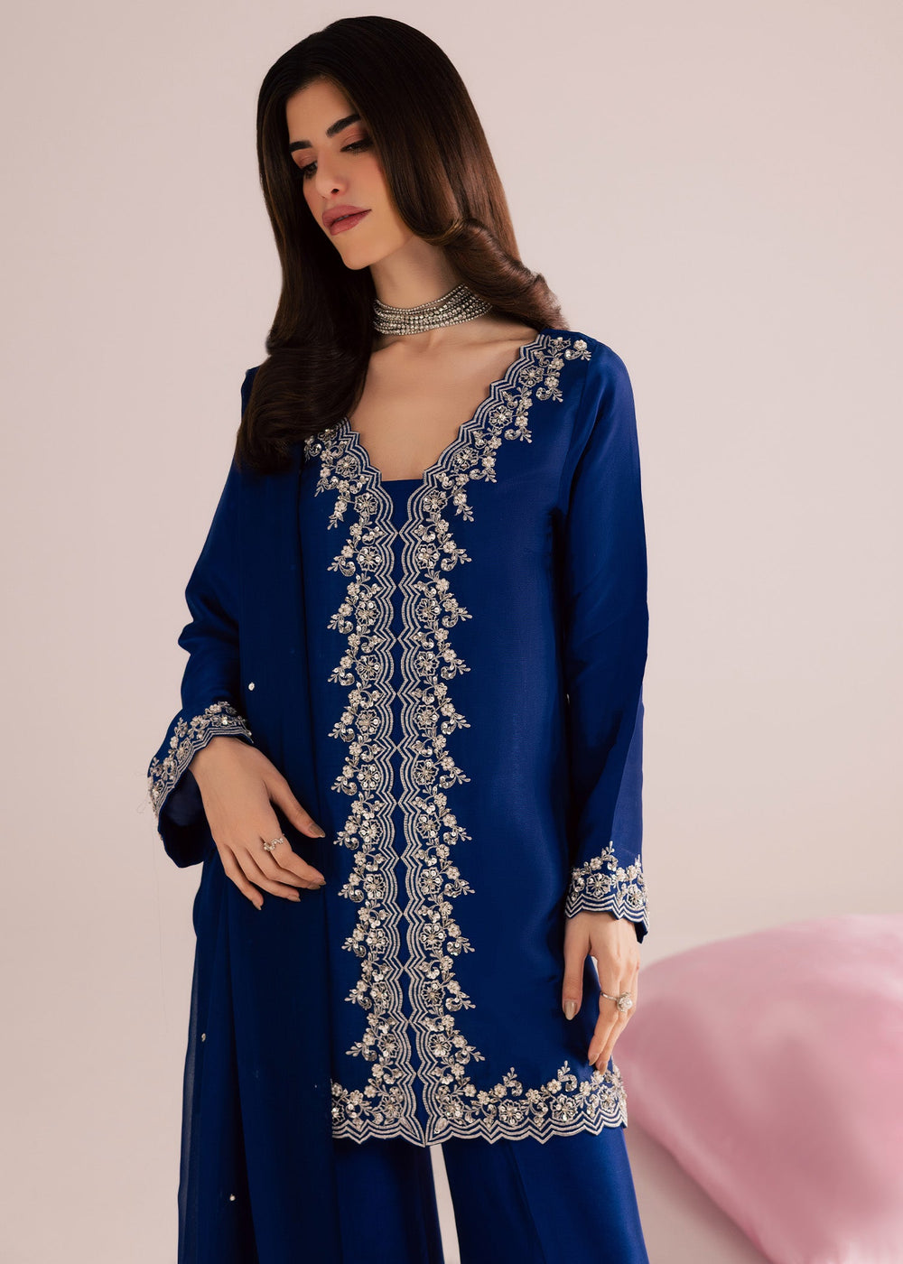 Allure By Ih - Alba Raw Silk Suit For Women - Navy Blue - 3 Piece