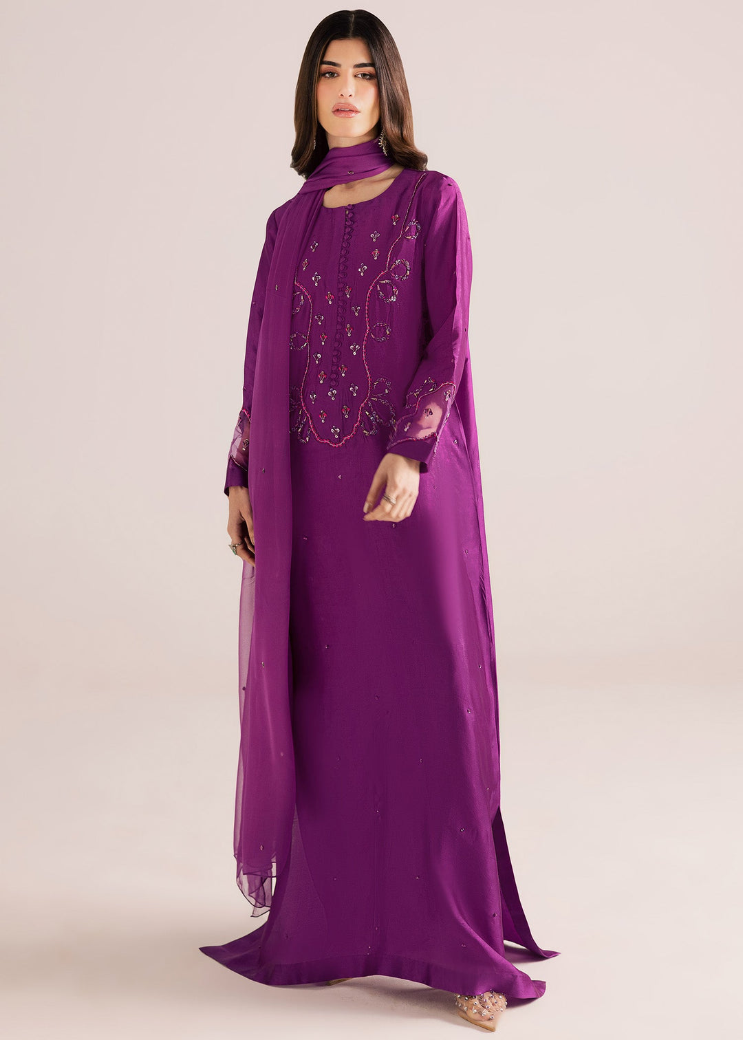 Allure By Ih - Dora Raw Silk Suit For Women - Purple - 3 Piece