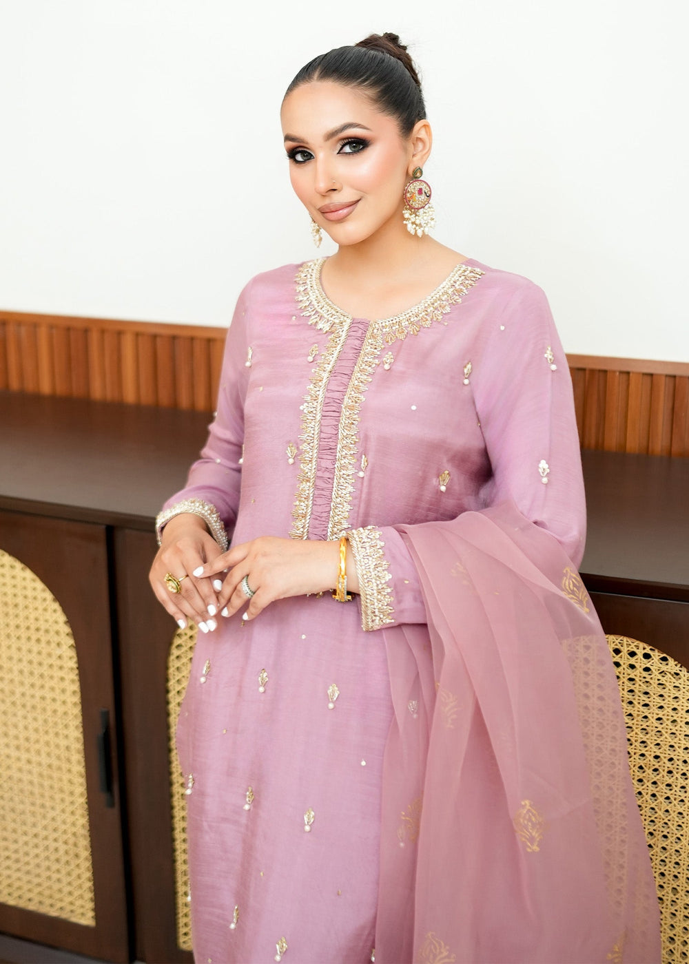 Allure By Ih - May Raw Silk Suit For Women - Tea Pink - 3 Piece