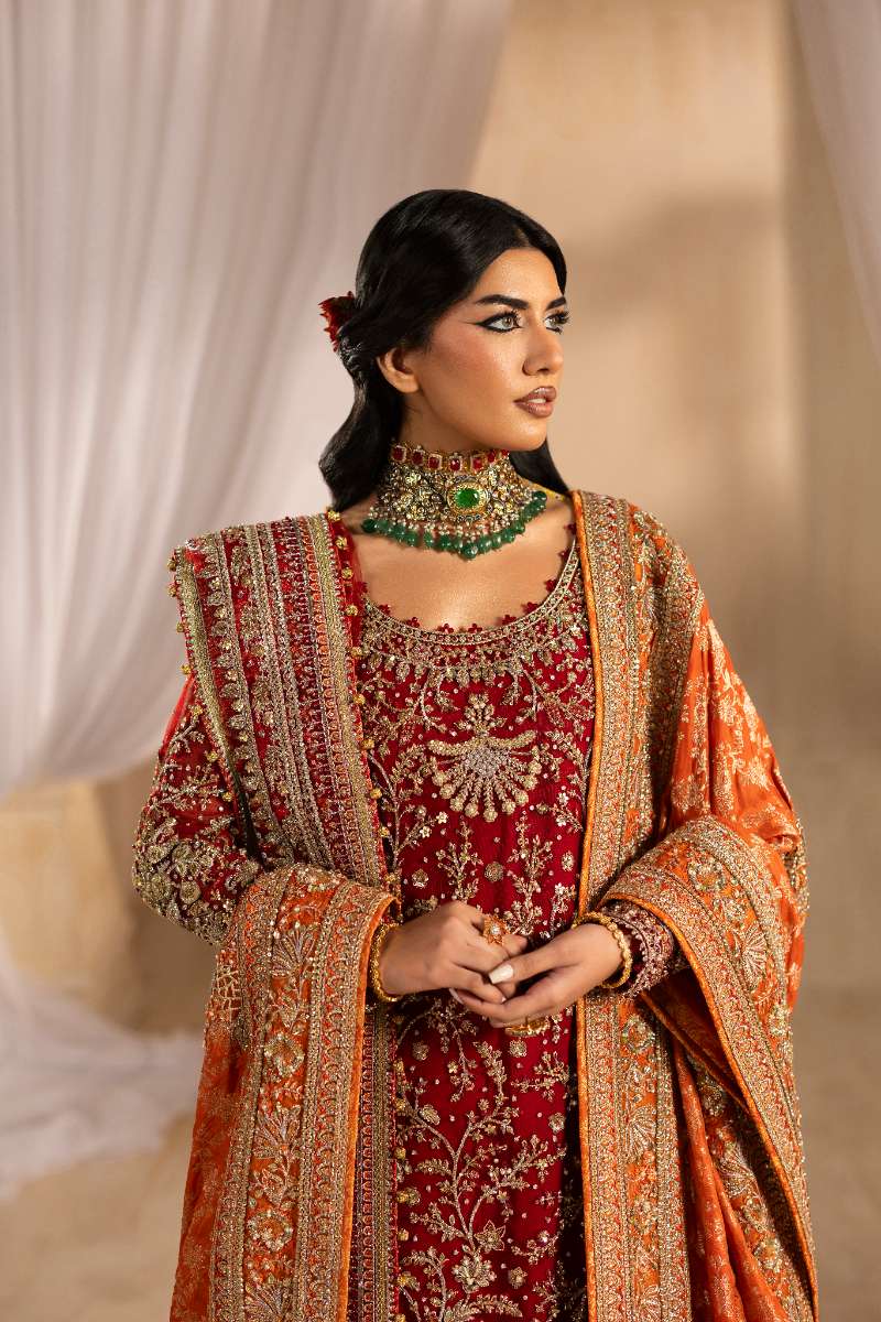 Anayra Amal - Dilkash Embroidered + Hand Worked Net+Jamawar Suit For Women - Red - 4 Piece