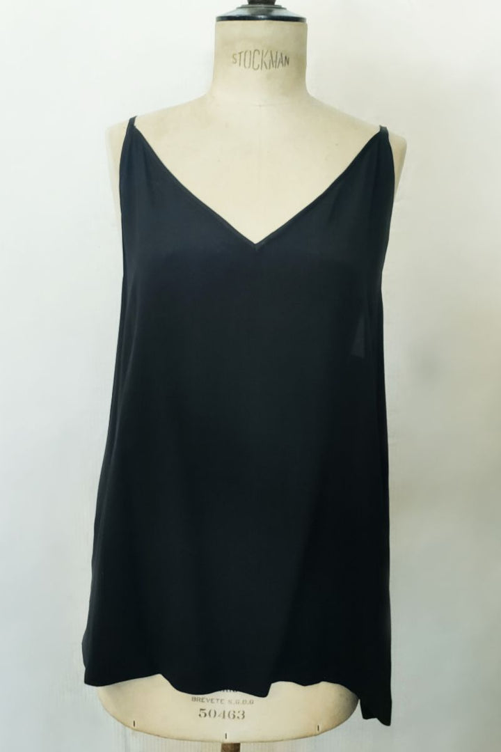 Classic camisole with V neckline and spaghetti straps.
