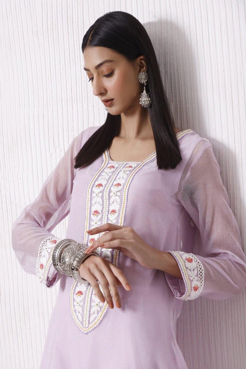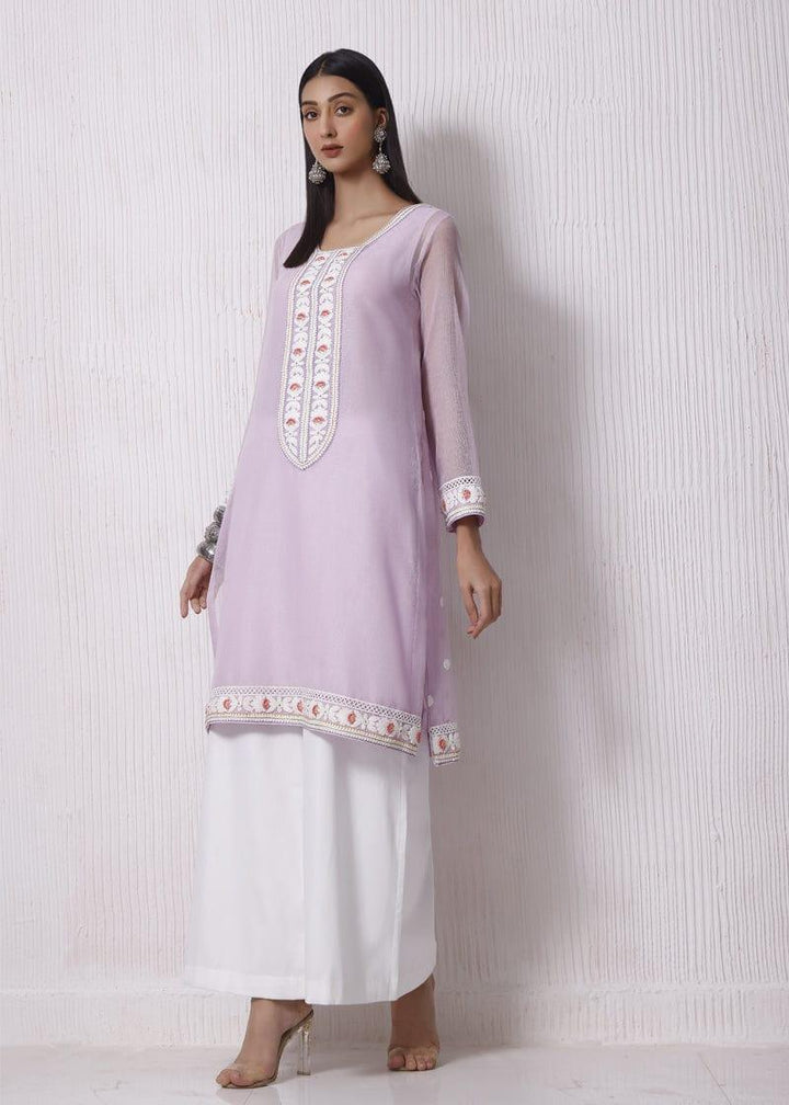 Lavender Cotton Net Kurta with Dori Work - Graceful and Chic