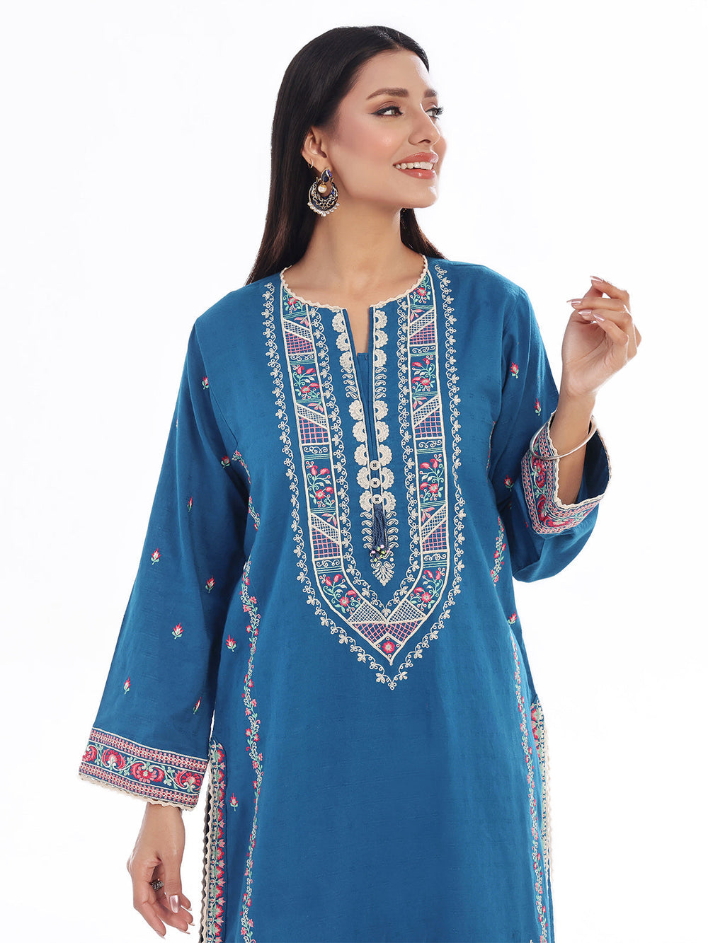 Oaks - Embroidered Pret Shirt Trouser Dobby Teal - 2 Piece