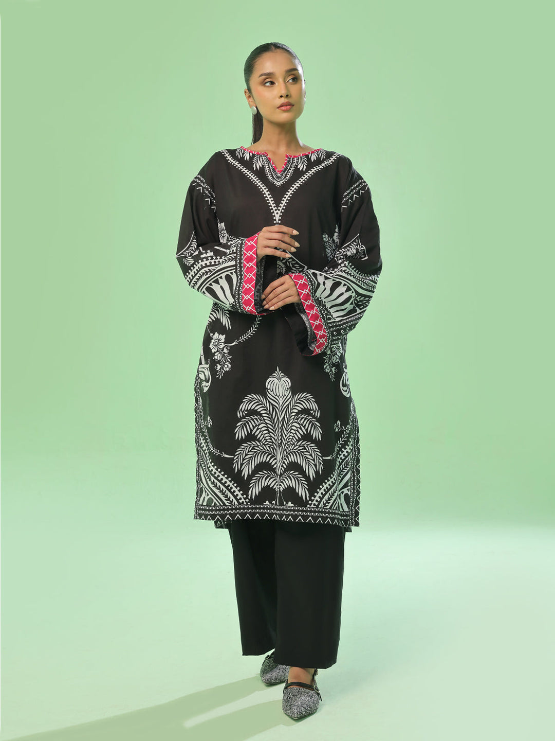 Oaks - Printed Pret & Unstitched Suit Lawn Black - 3 Piece